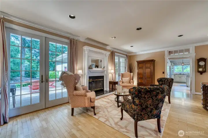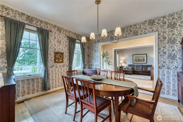 First time on the market! Private oasis near town. Gracious floor plan blends comfort and sophistication, ideal for entertaining and everyday living. This light-filled home blends timeless architecture with thoughtful modern updates. Expansive windows bring in natural light, creating warm, and welcoming spaces. View home offers a total of 1.55 acres with approx 608' of tidal front on Peninsula, 3 bedrooms, 2.5 baths. East facing front porch showcases City, Sound, Kingston Harbor, Mountain views. Outdoor stairs take you down to a private lagoon with a private dock. Centrally designed main level living room with pair of double doors opens to West facing large entertainment deck, eat-in kitchen, stainless appliances, dining room, den, utility, half-bath, and bonus room. Main level private guest quarters with walk in closet & ensuite bath. Upstairs primary ensuite retreat w/attached den/office/flex room w/deck access. Additional 2 bedrooms share a Jack & Jill bath. Upstairs also includes expansive bonus room w/deck access. Unfinished lower level as potential media room/gym/playroom/bedroom. Home offers expansive views w/stunning sunrises/sunsets from every room. Enjoy back deck privacy. Prime front yard viewing of Kingston 4th of July fireworks! Property has both mature fruit Apple tree and plants. Detached garage w/unfinished upper level workshop/storage area. Separate custom built shop. Easy walk to downtown Kingston, marina, parks, and ferry. Minutes to White Horse Golf Course