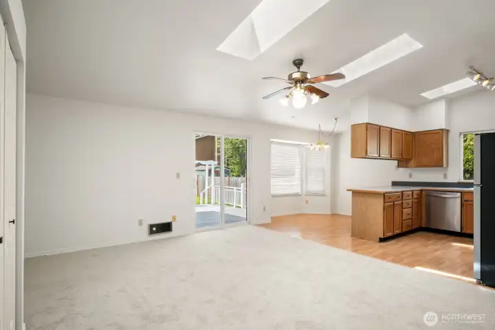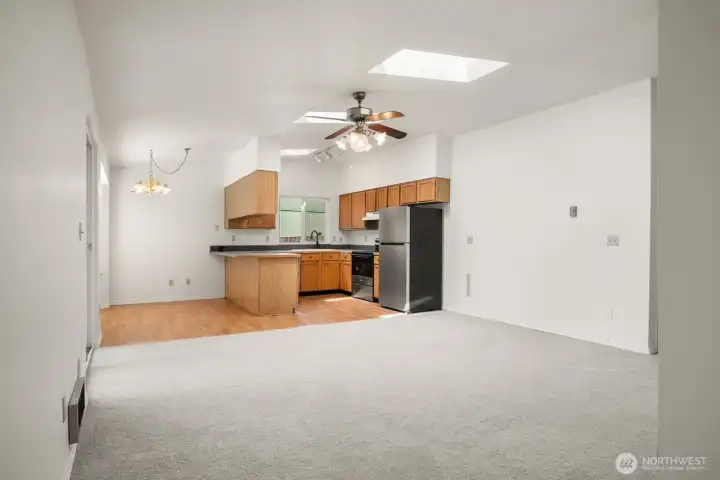 Virtually staged living area just off the kitchen