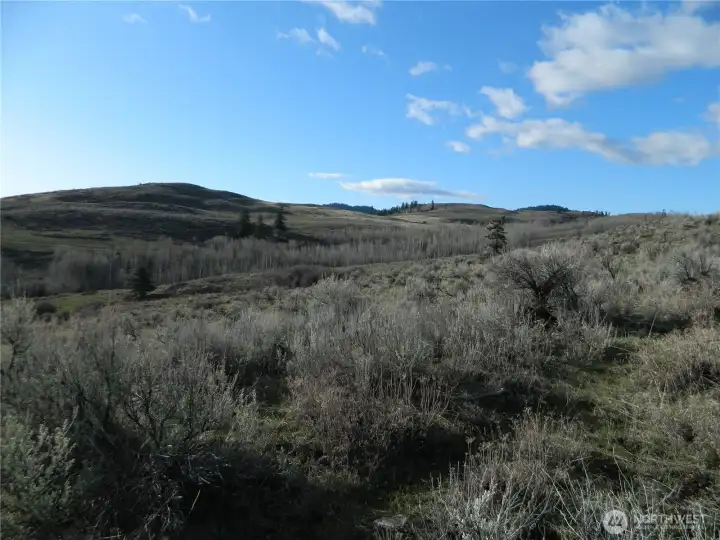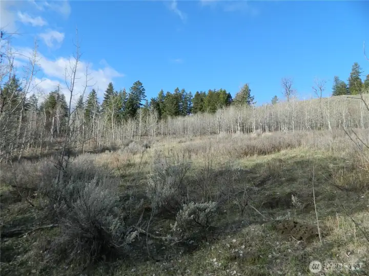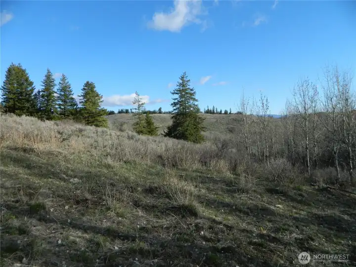 Here is approx 20 acres with territorial views that are spectacular. Secluded and quiet location, not far from public grounds with recreational opportunities as well as a couple of lakes. Several potential cabin sites or build sites on the property. Wildlife frequently crossing the property. Areas are nicley treed as well as some great open countryside !