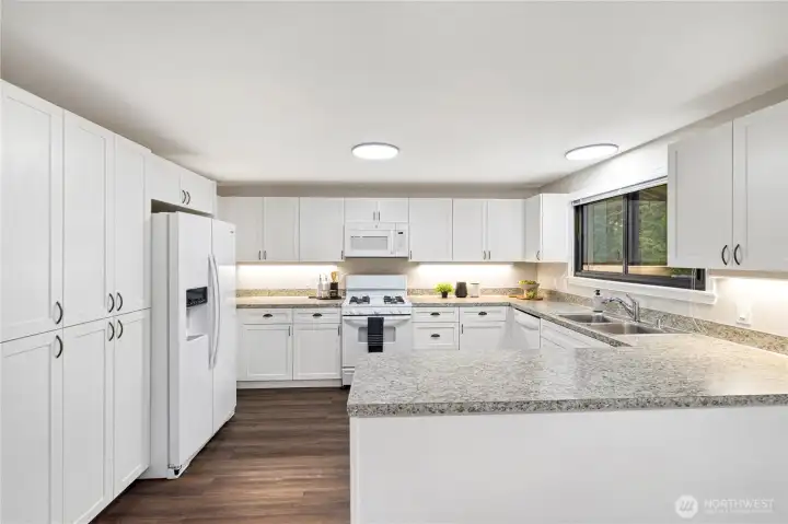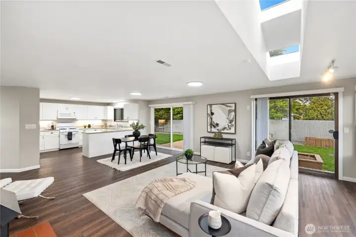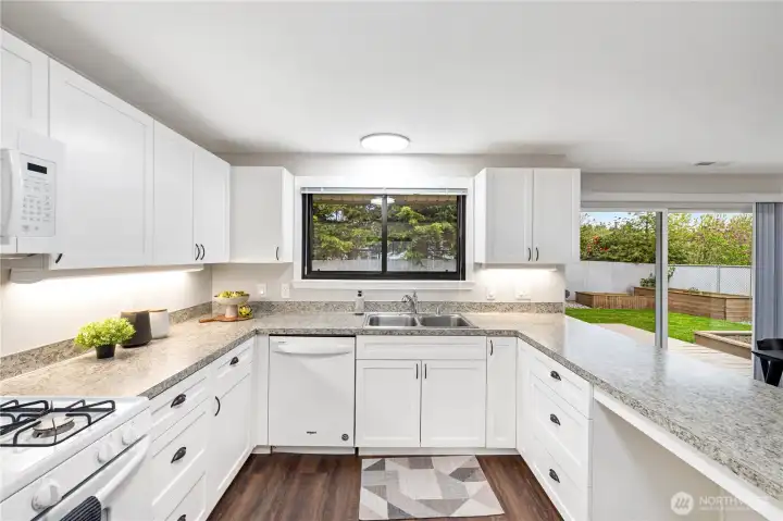 Experience easy one-level living in this charming Des Moines home, perfectly positioned to capture stunning views of the Puget Sound and Olympic Mountains. This beautiful home offers 3 bedrooms and 1.75 bathrooms, with fresh interior paint, updated flooring, and a beautifully refreshed kitchen. The open concept kitchen features a gas stove and flows seamlessly into the main living areas, creating a warm and inviting space ideal for everyday living and entertaining. A freestanding gas stove adds both charm and comfort, perfect for cozy evenings at home. Step outside to a fully fenced backyard—ideal for pets, play, or relaxing in privacy. Enjoy the convenience of a short walk to Marine View Drive, where you’ll find local shops and restaurants, or take a stroll to Des Moines Beach Park and Marina for waterfront exploration, scenic views, and outdoor recreation. This home offers the perfect blend of comfort, convenience, and Pacific Northwest beauty—don’t miss this opportunity!