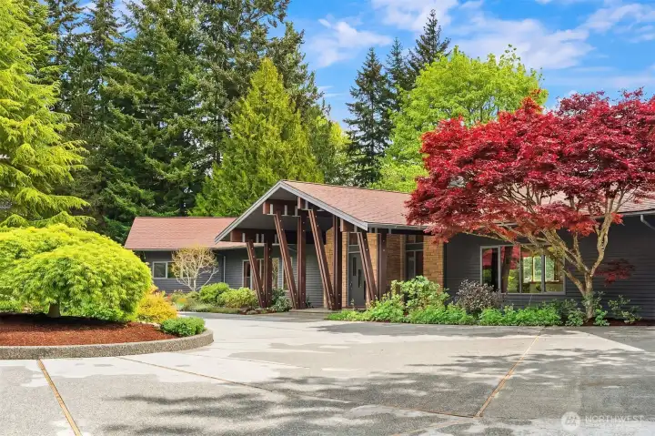 Privately sited on 5.5 manicured acres, this exceptional Vashon Island estate blends architectural sophistication with serene natural beauty.