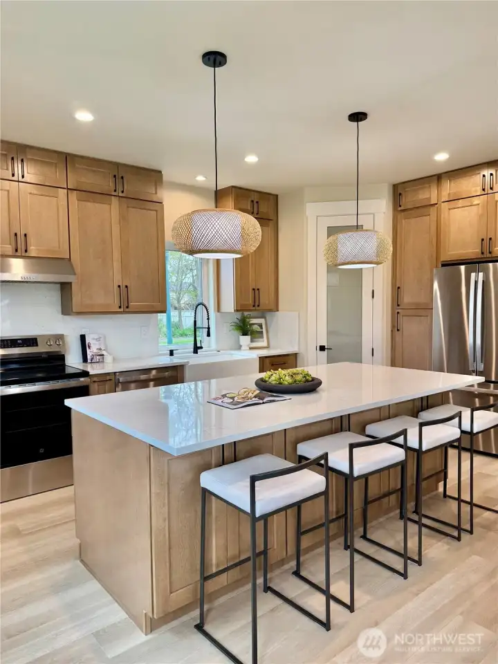Exquisite new construction in Downtown Sumner. This refined 4-bed, 2.75-bath home blends modern luxury with energy-efficient design, all within steps of shopping, parks, schools, and the nearby train station for easy commuting to Seattle or Portland. Enjoy radiant heated tile floors, a designer kitchen with ceiling-height cabinetry, walk-in pantry, oversized island, Quartz countertops and full Quartz backsplash, plus an undermount farmhouse sink and electric stove. The open great room features an elegant electric fireplace and abundant natural light from energy-efficient windows. The spa-inspired primary suite offers a rain shower, soaking tub, heated floors, premium cabinetry, and Quartz slab finishes. Additional bedrooms include walk-in closets, with durable laminate flooring throughout. Comfort is elevated with AC and heat forced-air system, LED lighting, and a hybrid water heater. Exterior upgrades include R5 insulated 1-inch energy-efficient exterior, Hardie siding, fully landscaped yard, and an oversized 2-car garage with EV charging outlet. This home delivers luxury, efficiency, and timeless design in one of Sumner’s most desirable locations. New construction home with a spacious open-concept layout and luxury finishes throughout. This one truly stands out. Schedule your tour today before it’s gone.