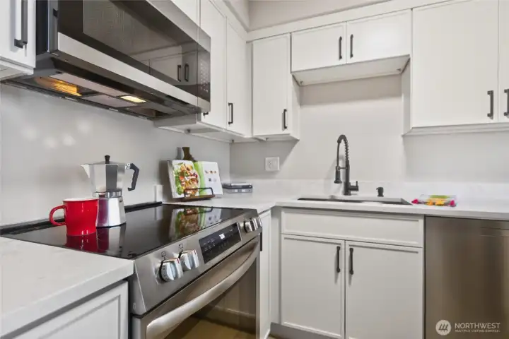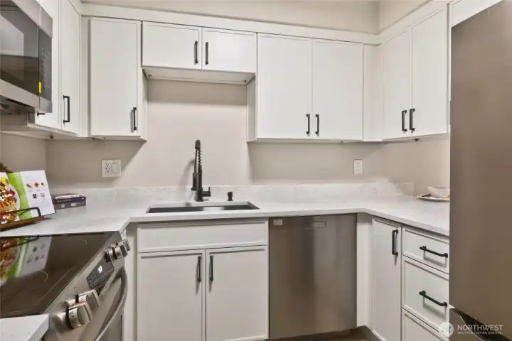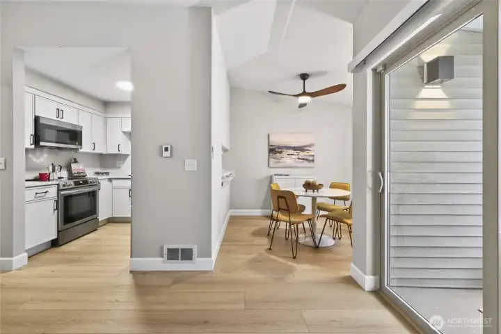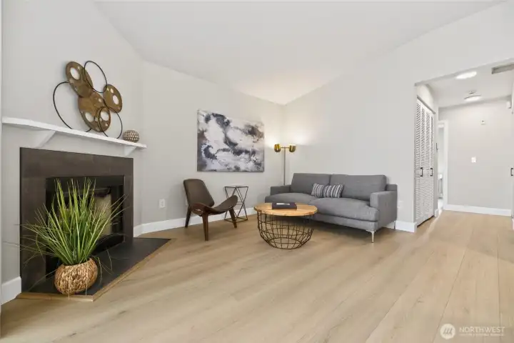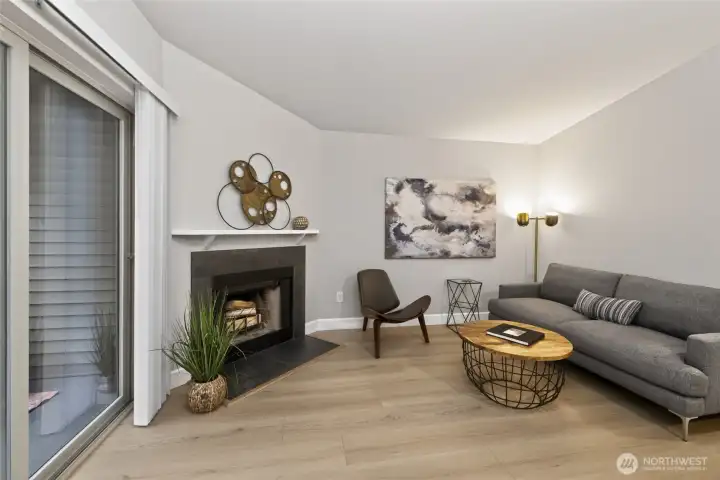 [ Downtown Kenmore & Lake Washington Waterfront just outside your front door!] Fantastic Walk, Bike, Transit, and Lifestyle Enjoyment Score here with numerous breweries, dining, shopping, the Burke-Gilman Trail, and parks - all within a few short moments away. This Top-Floor Corner End-Unit with Reserved Garage Parking features a Brand New Remodel with New LVP wide plank floors, New Stainless Appliances, All New Micro-Shaker Cabinets & Beautiful Honed Quartz Counters, New Lighting & Fixtures, New Tiled Shower, New Solid Wood Doors & Matte Black Hardware, Vaulted Ceilings + AC. The covered BBQ Deck offers year-round enjoyment, and the wood-burning fireplace adds to the ambiance. Great closet space + Huge Storage or Pantry. Fitness / Game room means it's all right here!. No Rental Cap & Low Dues, Pet Friendly. Pre-Inspected and Move-in-Ready!