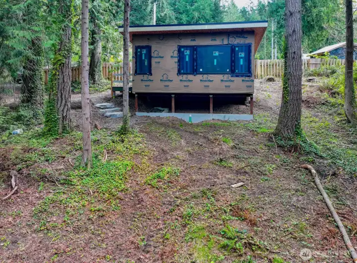 What an amazing opportunity in Indianola! Here is a started tiny home with all the hard work already done. This design is like a treehouse that was built by GreenPod Development, that was founded by Ann Raab in Port Townsend. The brand new 2 Bedroom Septic System has already been installed by Nathan Cleaver's company. This home was built using Structural insulated panels. SIPs are a high-performance building system for residential construction. The panels consist of an insulating foam core sandwiched between two structural facings. SIPs are manufactured under factory controlled conditions and can be fabricated to fit nearly any building design. The result is a building system that is extremely strong, energy-efficient and cost-effective. This home is ready for you to finish it off as your dreams wish. It is a complete shell ready for you to add the HVAC, plumbing, wiring and all finishes. There's Anderson windows already installed and a cute front deck. This is a cute home that is started and ready for you to finish and hook up to the utilities. This one already has the Septic, Power and Water including the water meter already installed. This .49 Acre lot is very close to the sports court and close to the Indianola Clubhouse, Country Store, Town Square, the Dock and the Indianola community waterfront beach. Indianola also has a boat launch. Close to White Horse Golf Course and Cedar Ridge Grill. Easy commute to both ferries (Kingston and Bainbridge Island)