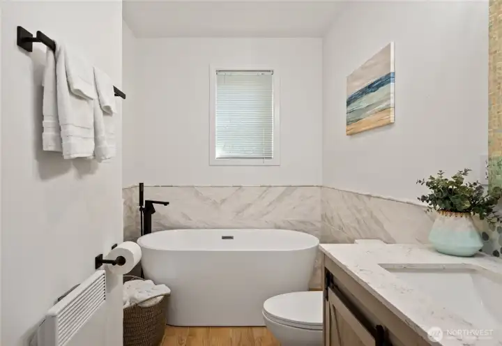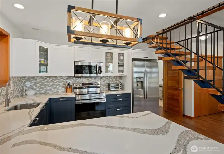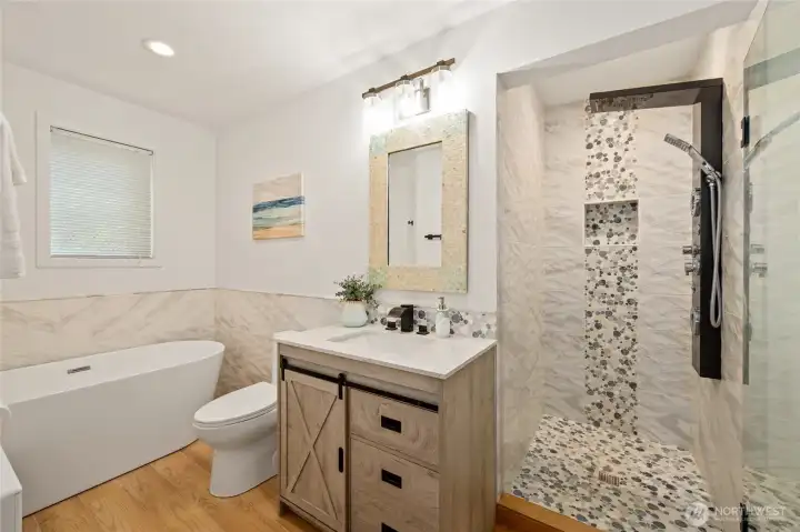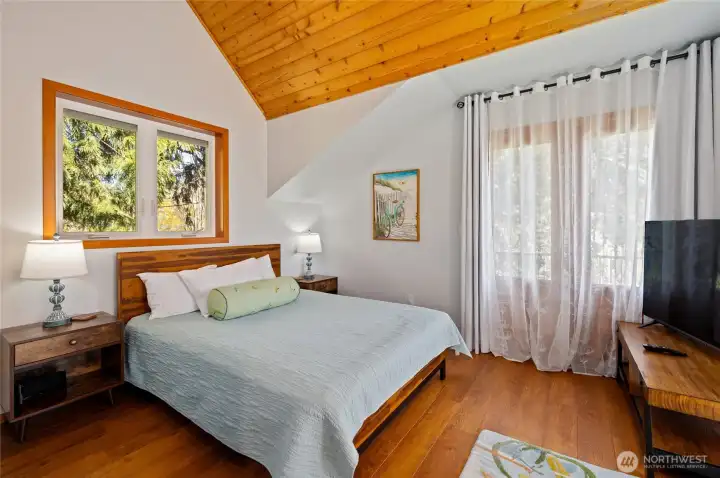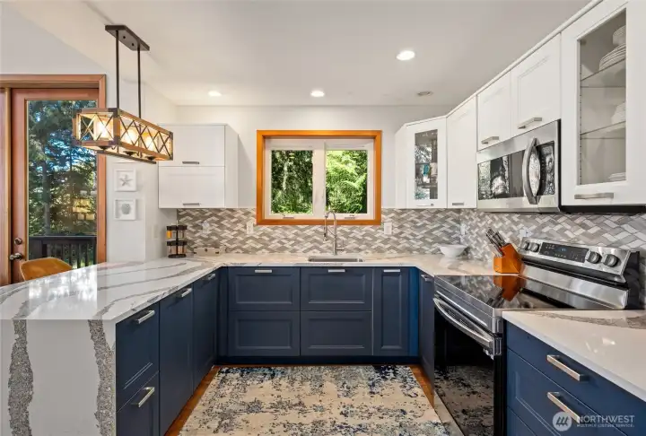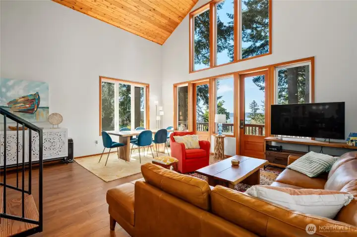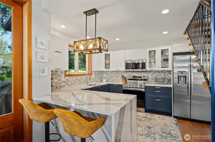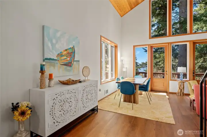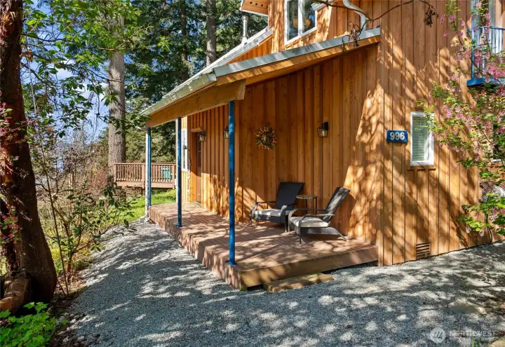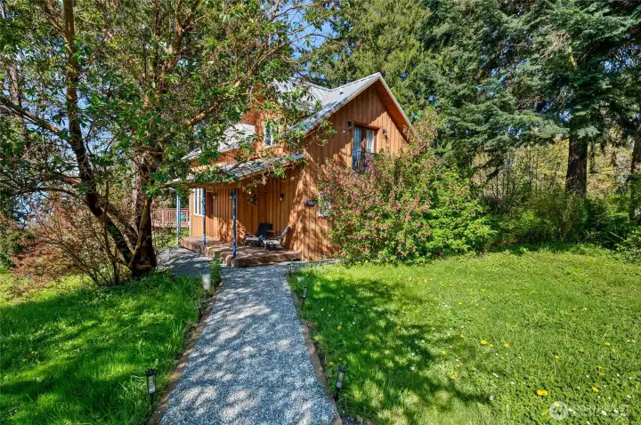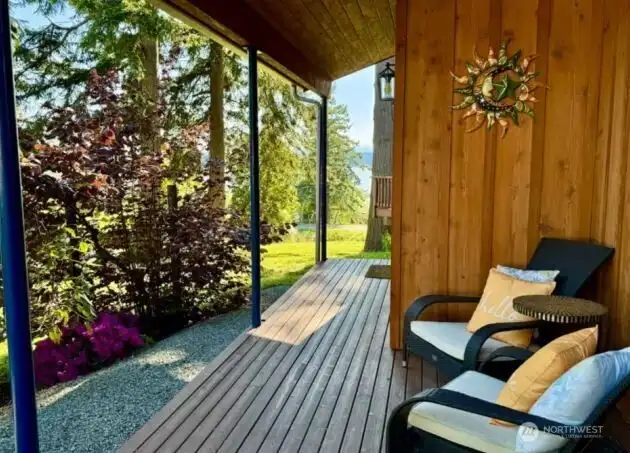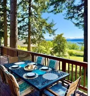 Tucked away on the Westside of Camano Island, this home is a truly magical retreat where every detail has been thoughtfully reimagined. This beautifully renovated 2-bedroom, 1.5-bath home offers captivating views and a sense of peace the moment you arrive. The lot in front is also included, bringing the total property to nearly an acre-offering added privacy, space, and future potential. Completely transformed in 2023, the home shines with new interior and exterior paint , along with a brand-new railings and stairs for the deck-perfect for soaking in the surrounding beauty. Inside, you'll find luxury waterproof Westchester flooring throughout, backed by a lifetime warranty, creating a seamless and elevated feel. The spa-inspired bathroom is a showstopper, featuring high-end tile, a soaking tub, and a luxurious rain shower-your own private escape. The fully redesigned kitchen is equally impressive, boasting waterfall Cambria quartz countertops, an exquisite backsplash, and sleek stainless steel appliances. This is perfect for both everyday living and entertaining. Currently operating as a successful Airbnb, this home offers not only charm but proven income potential. It’s being sold mostly furnished with high-end brands, making it truly turnkey. Select rugs and wall art are negotiable, allowing you to personalize your space. Whether you're looking for a home, serene getaway or an investment opportunity, this one-of-a-kind island retreat delivers.