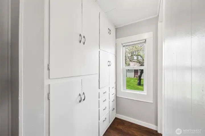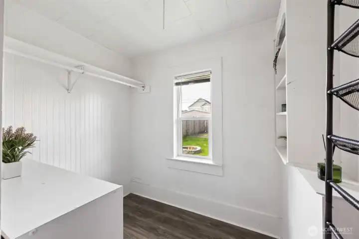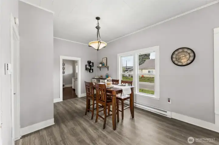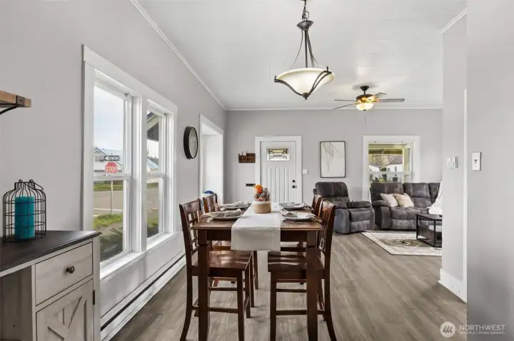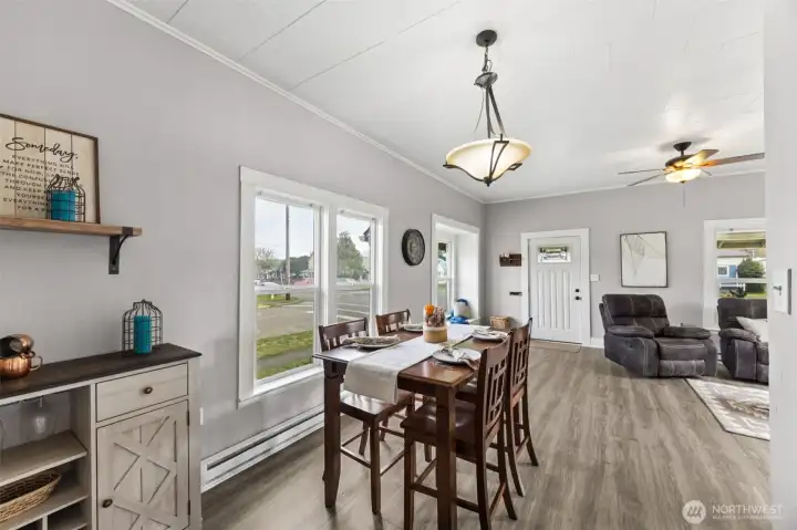 Tall ceilings matched with large windows make this space so inviting and warm!