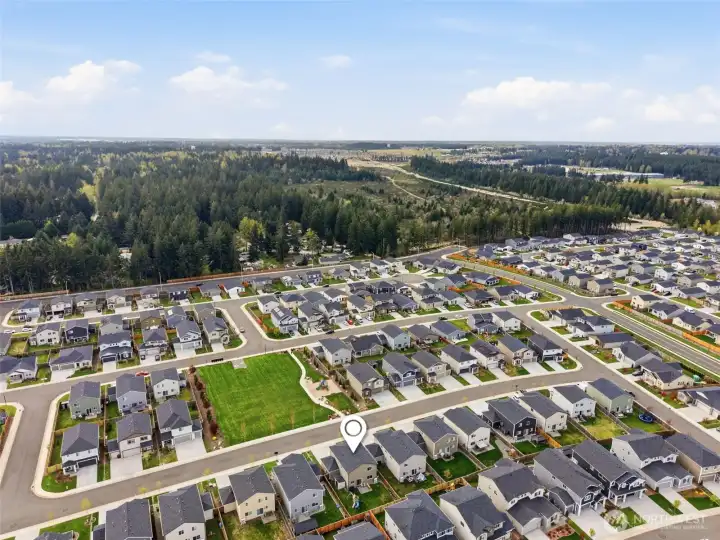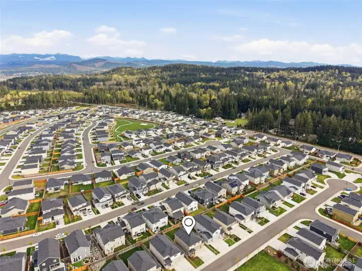 Welcome home! This like-new, 4-bed, 2.5 bath, 2,121 sq ft Merlot floorplan in the Daybreak community, located directly across from the neighborhood playground, is the one you've been looking for. Open-concept main level connects living, dining, and kitchen with quartz countertops throughout, a large island, pantry, and natural gas connected. Interior includes added board and batten wall detail, designer wallpaper accents, and updated finishes beyond builder standard. Upper level includes all bedrooms, including primary suite with upgraded closet system and en suite bath, plus loft/flex space and full bath. 3-car garage with EV charging capability. Fully fenced yard with a defined outdoor space and permanent outdoor lights gives you the perfect oasis right on your back porch. Conveniently located between Orting, Graham, and Puyallup.