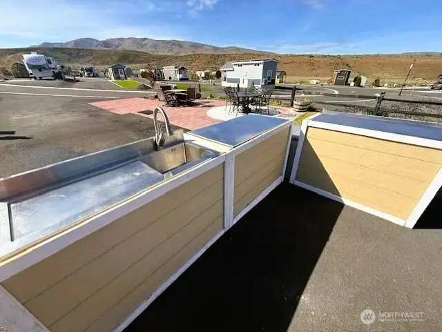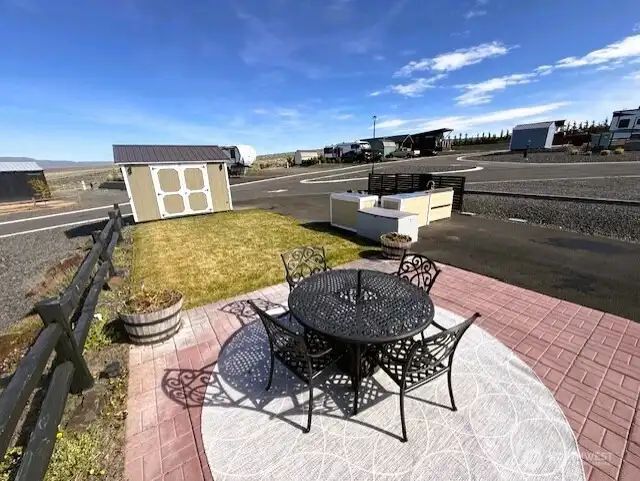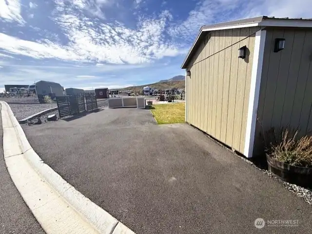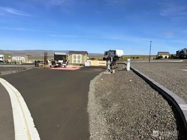 Pull-through RV lot with full hookups and mountain views at Naches RV Resort, approx. 20 miles west of Yakima. Lot #45 is an oversized 4,356 sq ft site on a scenic bluff, designed to accommodate a motorhome, 5th wheel, travel trailer, or park model. This desirable lot features full hookups, including a frost-free spigot for year-round use, and is ideally located near resort amenities. Improvements include full asphalt surfacing, irrigation and lawn, paver patio, fencing, enhanced landscaping, and a 10x12 storage shed. A well-appointed outdoor kitchen is also included, perfect for entertaining and enjoying the setting. Located in a recreation-rich area with nearby ATV and snowmobile trails, fishing, hunting, hiking, golf, skiing, breweries, and farm stands, this property offers year-round enjoyment. Resort amenities include a clubhouse with kitchen, large-screen TVs, and indoor fireplace, plus a saltwater pool, hot tub, fitness center, pickleball courts, laundry, showers, playground, dog park, and walking trails. HOA dues of $190/month cover water, sewer, garbage, landscaping, and amenities; electricity is owner-paid. Optional onsite rental program available. Ideal for personal use or investment, this property combines upgrades, scenery, and resort convenience.