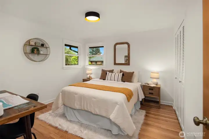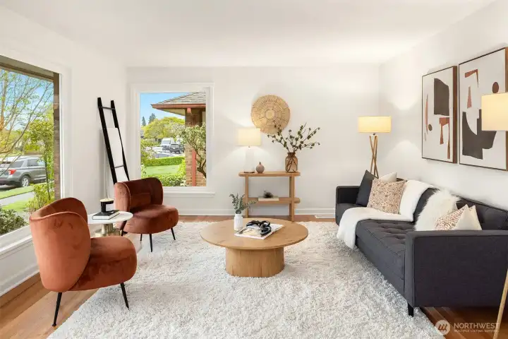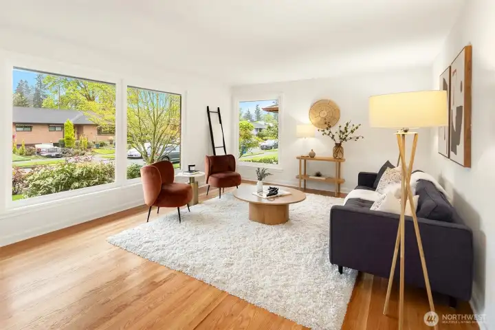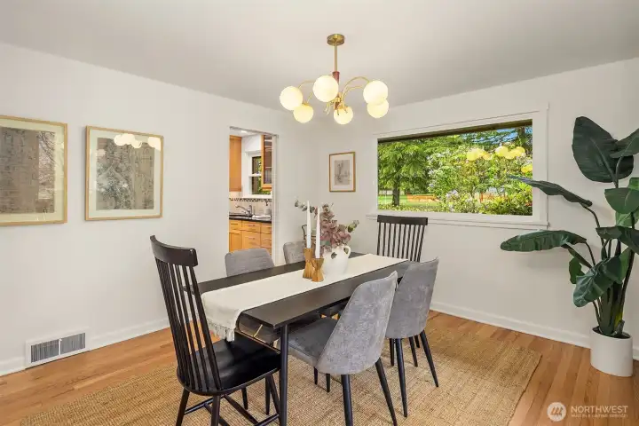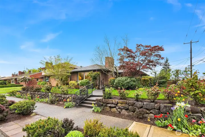The corner charmer you won’t want to miss. First time on the market in over 40+ years, this lovingly maintained 1953 home offers a rare opportunity to own a true legacy property. Set directly across from newly renovated View Ridge Park, the setting is as special as it is convenient. A welcoming front porch and spacious back patio make indoor-outdoor living easy. The main level offers a large, light-filled living room, dedicated dining space, and an updated kitchen with direct access to the backyard, along with a coveted three-bedroom layout all on one level. Thoughtful updates include newer windows, a heat pump for efficient heating and A/C, fresh interior paint, and beautifully refinished hardwood floors (protected under carpet for decades!) The lower level offers a generous rec room, three quarter bath, laundry, and expansive utility/storage area, plus an attached two car garage. The grounds are truly special, with abundant, thoughtfully curated rose gardens planted by master gardeners, a testament to decades of care. Charming, well maintained, and full of potential, this turnkey home is ready for its next chapter.