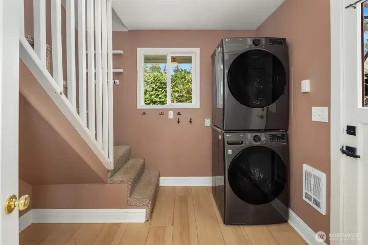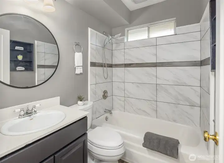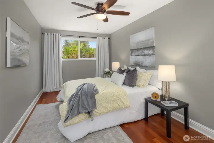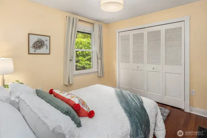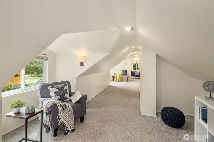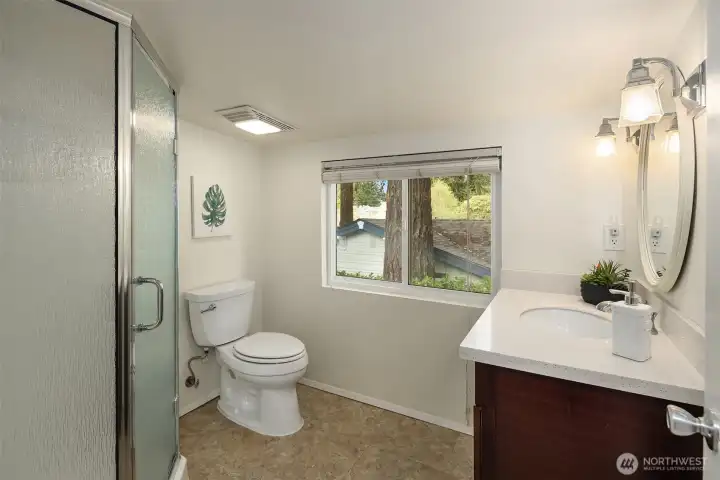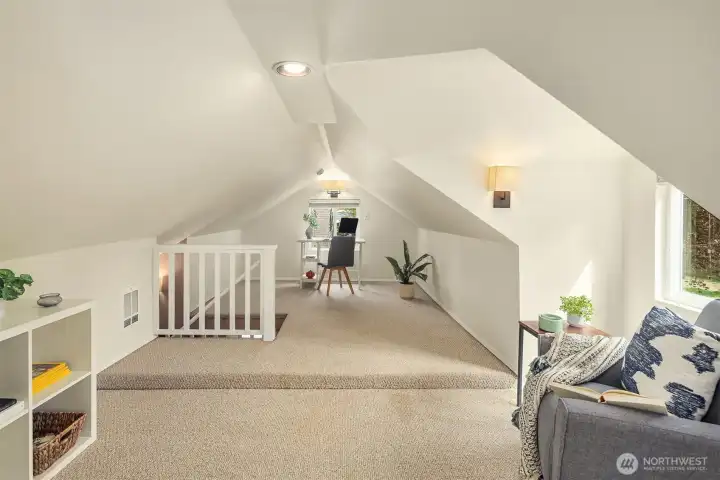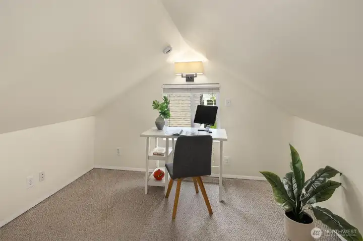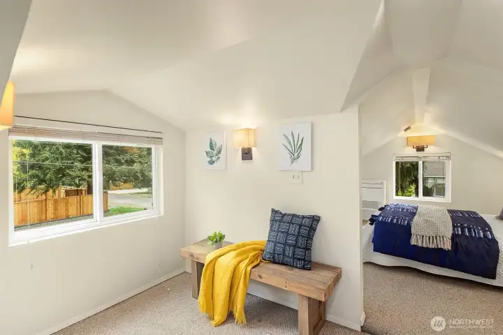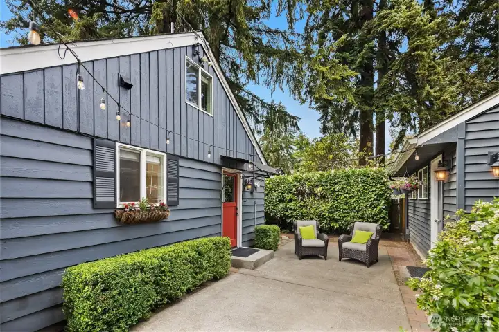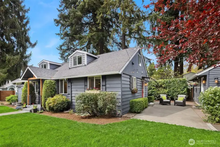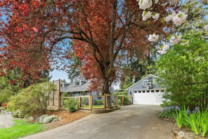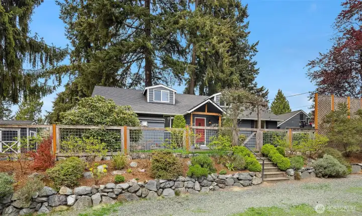 Storybook charm meets thoughtful updates in this picture-perfect home, perched on a corner lot with a fully fenced, beautifully curated yard. Garden beds, blooming landscaping, flower boxes, and a spacious patio create the ideal setting for outdoor dining and entertaining. A detached 2-car garage and long driveway offer both convenience and flexibility, plus a newer garden shed for added storage. Inside, the newly remodeled kitchen shines with top-of-the-line appliances, stunning countertops, abundant storage, and a large sink overlooking the landscape. The cozy living room is anchored by a gorgeous gas fireplace, creating a warm and inviting space to unwind. The main level features a primary bedroom, an additional bedroom, and a full bathroom. Upstairs offers incredible versatility with a bonus space, office area, ¾ bath, and another bedroom—perfect for guests or work-from-home living. Complete with A/C for warm summer days, this home is truly as charming as it is functional—one that just feels right the moment you arrive.
