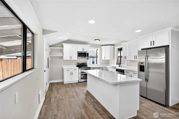 Here's What You Really Get for the Money at 518 S 56th St...Drive up at sunset and you'll see it a classic Tacoma craftsman with solid bones, dressed sharp in fresh charcoal-and-dove paint. But the curb appeal is the least of what's going on here.Walk through the front door and the house opens up bigger than it looks. The living room wears a tray ceiling and a modern linear fireplace like a quiet flex. Past that sits the kind of kitchen people actually cook in, crisp white shaker cabinets, quartz counters that run for days, stainless appliances, and a center island big enough to host breakfast, homework, or a late night dessert. The main floor bedroom opens through black framed French doors to a covered back deck. Upstairs, more bedrooms catch morning light through oversized windows. The full bath is done right: white subway tile, glass mosaic accent, clean fixtures.Then there's the part that separates this from every other updated bungalow in the South End:A detached three-bay shop.Workbenches. Cabinets. Pegboard. Room for projects, toys, a side hustle, or the truck you've been promising yourself. Plus a fully fenced yard, alley access, and a covered patio for Saturday barbeques.Fully renovated. Move-in ready. Shop space most Tacoma neighborhoods simply don't have.Homes like this; turnkey inside, serious square footage out back; don't sit. See it this weekend before someone else has the chance.