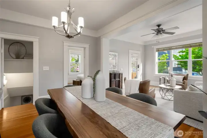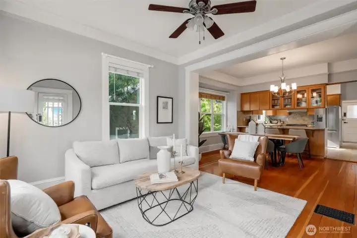 Welcome to this quintessential Craftsman sited between Fremont & the best of Ballard's shops, markets, breweries and more! With high ceilings and hardwood floors the main level flows openly from living room, dining and kitchen - to two bedrooms and one full bath. Lower level features a spacious family room with a plumed bar and separate entry on to the patio for easy entertaining or rental potential. The pet-friendly large & level fully-fenced yard with garden space offer you an oasis in urbanity. Secure garage and one additional off alley spot make access a breeze. Lots of updates like electrical, furnace and water heater. Pre-inspected. Don't miss the new Starbucks or great parks nearby!