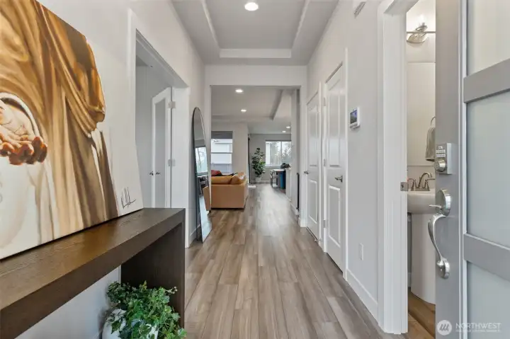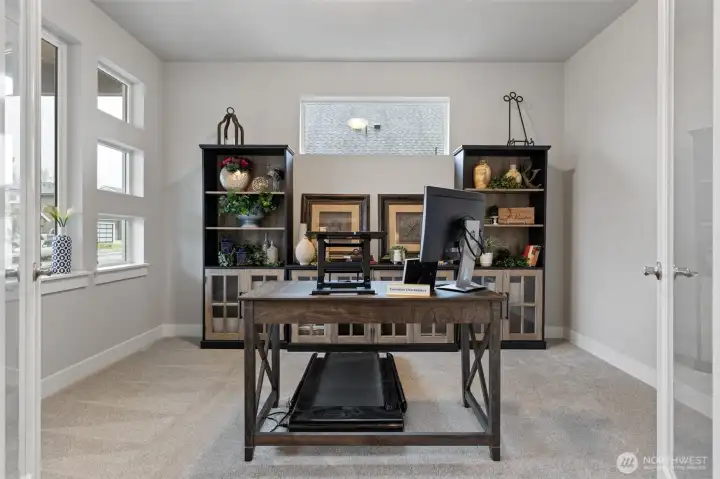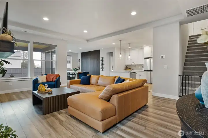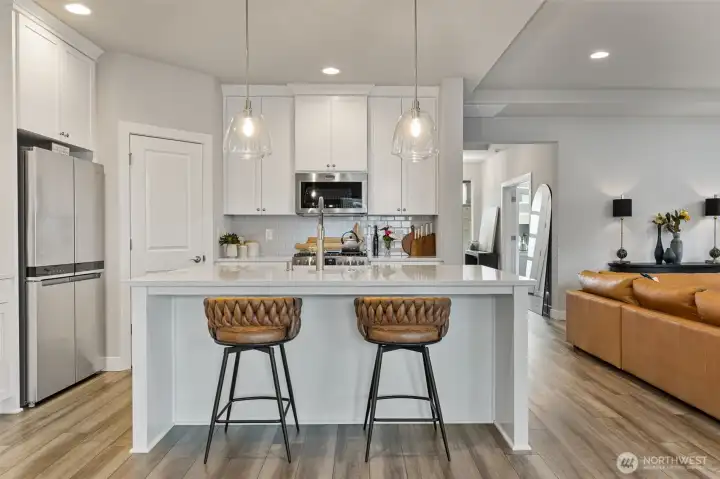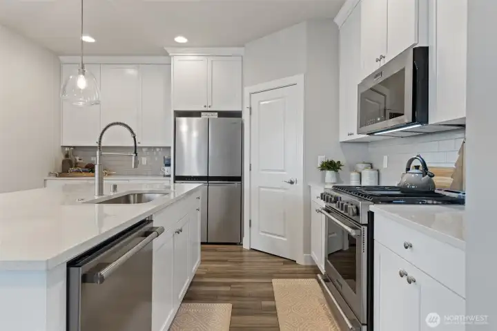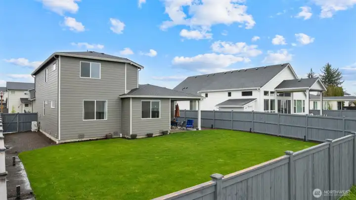 Nestled in the foothills near downtown Enumclaw, this barely lived-in Pacific Lifestyle Home blends modern comfort with a welcoming community atmosphere. While you’re close to town and still in King County, Enumclaw serves as a gateway to mountain adventures—whether hiking, exploring, or simply enjoying the natural beauty nearby. Inside, the main floor primary suite offers a spacious walk-in closet and luxurious five-piece bath. The chef’s kitchen includes a gas cooktop, stainless steel appliances, a walk-in pantry, and a casual eat-in area. The dining space, accented by a feature wall, opens onto a covered patio—perfect for year-round enjoyment. Custom blinds provide a polished touch and privacy. The main floor also includes an office with double glass doors. Upstairs, a spacious loft and two oversized bedrooms await. The fully fenced yard is ideal for activities and pets. Enjoy Enumclaw’s local charm and the mountain lifestyle right at your doorstep!