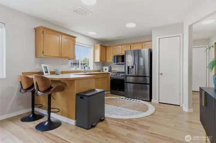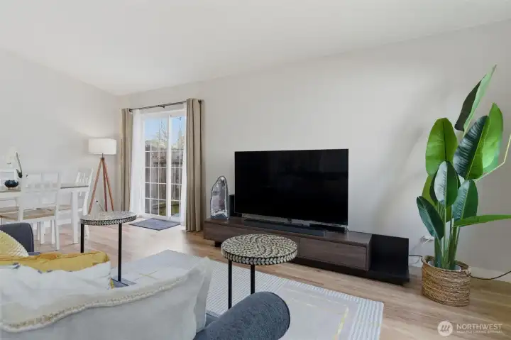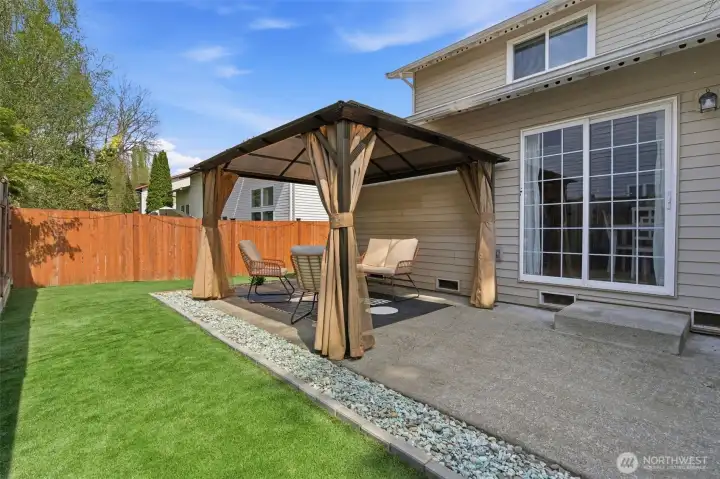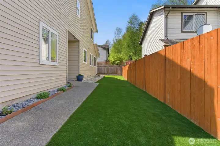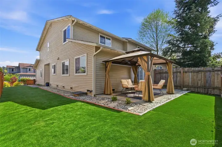 Welcome to this charming and spacious home with an outdoor oasis you don’t see every day! This updated and private duplex-style single family home offers 3 bedrooms and 2.5 baths with a comfortable, easy-flow layout. The main level features a light-filled open-concept living, dining, and kitchen area, plus a convenient powder room with washer/dryer. A proper entryway adds separation, and the oversized 2-car garage provides ample parking and storage. New stainless steel kitchen appliances and washer/dryer. Upstairs features a spacious primary suite with its own bath and generous closet space, along with two additional bedrooms and a full bath. The home is truly move-in ready, with newer luxury vinyl plank flooring, carpet, light fixtures, interior paint, and molding. Step outside to beautifully designed outdoor spaces ideal for relaxing and entertaining. A well-appointed gazebo creates an inviting setting to unwind, while the sunny yard offers space for gardening. The front yard creates an inviting first impression with curated landscaping and decorative stonework. The fully fenced backyard showcases a premium synthetic turf designed for durability and year-round appeal. Thoughtfully selected for its non-toxic materials, excellent drainage, and antimicrobial backing, it provides a clean, low-maintenance environment safe for humans and pets. No HOA and ideally located near schools, shopping, and easy freeway access, this home offers comfort, quality, and convenience all in one.