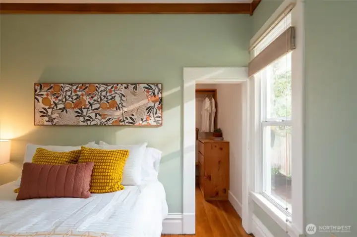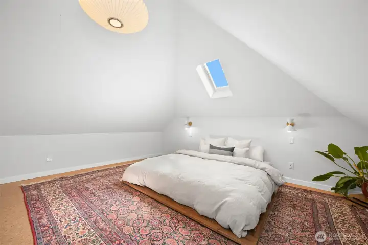 Upstairs bedroom in the converted attic. Amazing natural light from a skylight.