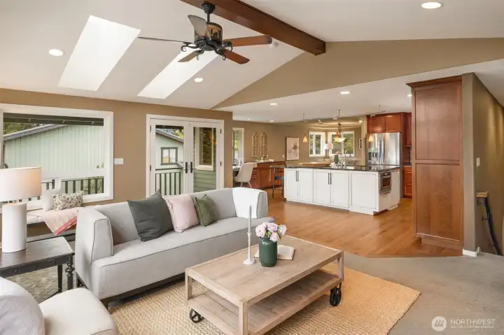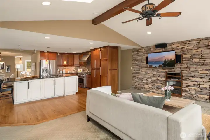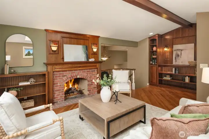 Second living area with gas fireplace.
