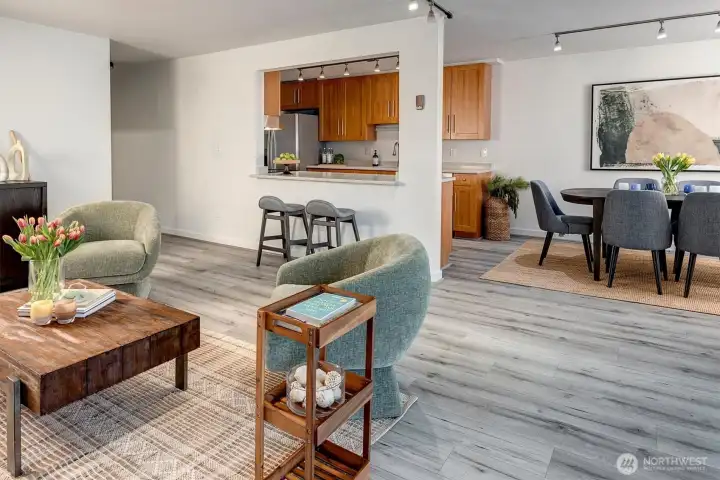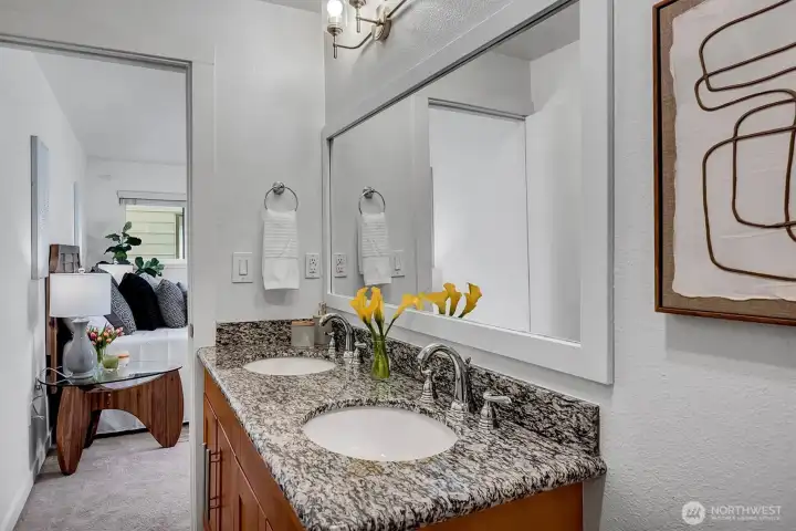 Standout opportunity in Madison Park! With a spacious floor plan, this two bedroom and two bath home offers a level of comfort and flexibility that sets it apart from other available offerings. Main-floor access allows for effortless living with no stairs or elevator wait, while interiors include updated finishes with granite counter tops and stainless steal appliances. Enjoy the light-filled spaces, with a dining area big enough to host a group or just a quiet night at home. The oversized private patio offers an extension of the living space, perfect for indoor-outdoor living. Spend summer days entertaining friends by the pool, or launching a kayak outing for a quick cruise around Lake Washington. All just moments from your door, creating a lifestyle that feels like you are on vacation everyday.