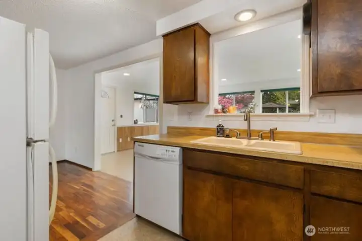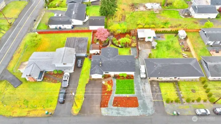 Nestled on a quiet, lightly traveled side street, this charming rambler features 3 bedrooms, 1.75 baths, and the comfort of natural gas heat, hot water, and a cozy gas fireplace for those chilly nights. Real walnut hardwood floors bring warmth and character throughout, complimented by pristine vintage details. The interior has been freshly painted, and a brand new roof installed in December 2025 adds peace of mind. With no HOA and RV parking, you'll enjoy extra freedom and flexibility. The expansive, fully fenced backyard is a true retreat. Ideal for entertaining or unwinding in the cabana of your own private oasis. or relaxing by the backyard fire pit. The garden is a standout, with an herb garden, strawberries, two varieties of kiwi, grapevines, blueberries, rhubarb, and dedicated vegetable beds. Conveniently located near schools, shopping, restaurants, parks, and I-5, this home offers comfort, charm, and convenience. Don't miss the opportunity to make this home your own!