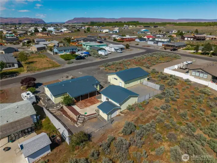 Desert Aire opportunity with space, functionality, and lifestyle! Situated on a level lot in a quiet cul-de-sac, this well-maintained 3 bed, 2 bath home offers 1,296 sq ft of comfortable living with vaulted ceilings, abundant natural light, and an open layout connecting the living, dining, and kitchen areas. The kitchen features ample cabinetry and flows seamlessly for everyday living or entertaining. Primary suite includes a private bath and generous closet space. Outside, the property truly shines fully fenced with RV parking, covered patio space, plus 2 impressive detached shop/garages offering extensive covered parking and room for hobbies, storage, or toys. Plenty of off-street parking and space to spread out. Enjoy year-round comfort with central A/C. Located in Desert Aire, known for 300+ days of sunshine, golf course living, airfield access, boat launch, trails, parks, and Columbia River recreation. Ideal as a full-time home, getaway, or investment in a sought after recreational community. Desert Aire offers a relaxed, resort style lifestyle with a strong sense of community. Residents enjoy an 18-hole golf course, community pool, tennis courts, fitness center, and clubhouse. With easy access to boating, fishing, and water sports on the Columbia River, plus nearby wineries and scenic desert landscapes, it’s a year round destination for both adventure and relaxation.
