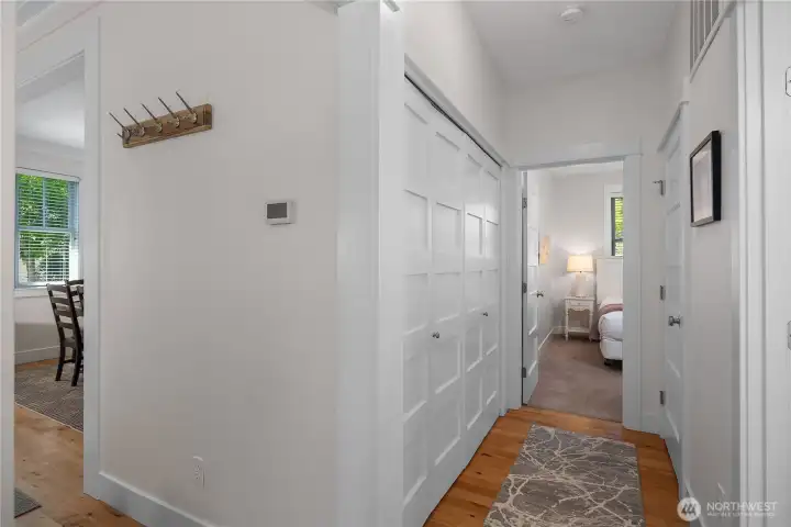 Experience the perfect blend of serenity and convenience at Hook, Wine and Sinker, nestled just outside town. This home is ideally situated near the indoor pool and Crescent Park, offering easy access to Seabrook amenities. Inside, the home welcomes you with a spacious living area, featuring rich wood floors and the cozy ambiance of a classic Rumford fireplace. The well-appointed kitchen boasts granite countertops and generous storage. Practical features include a nearby utility room with a half-bath, washer, and dryer. The main level includes two bedrooms that share a full bathroom with a tub/shower combination. Upstairs, the primary bedroom offers a relaxing escape, complete with a walk-in closet and a dedicated private bathroom featuring dual sinks and a tub/shower. Enjoy the outdoors by starting your day on the front porch with a picturesque sunrise view. Spend your evenings relaxing in the backyard, either gathered around the fire pit or soaking in the hot tub. Parking is simple with access to a shared one-car garage.