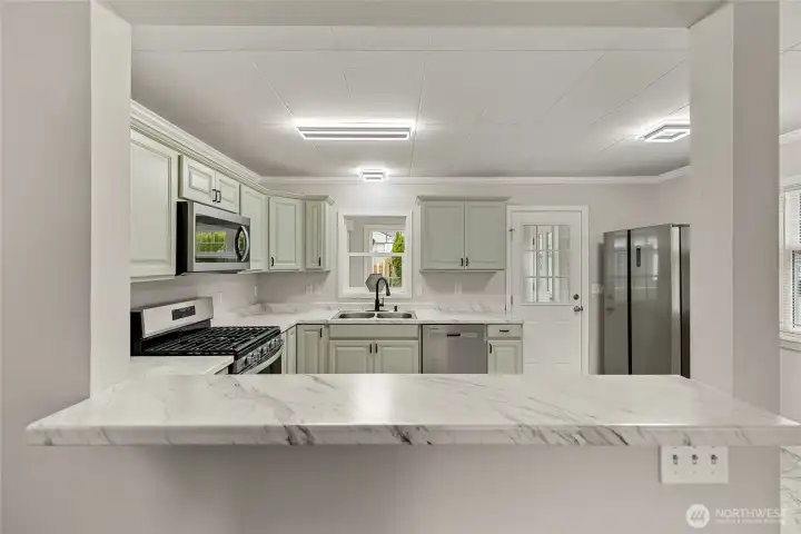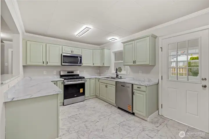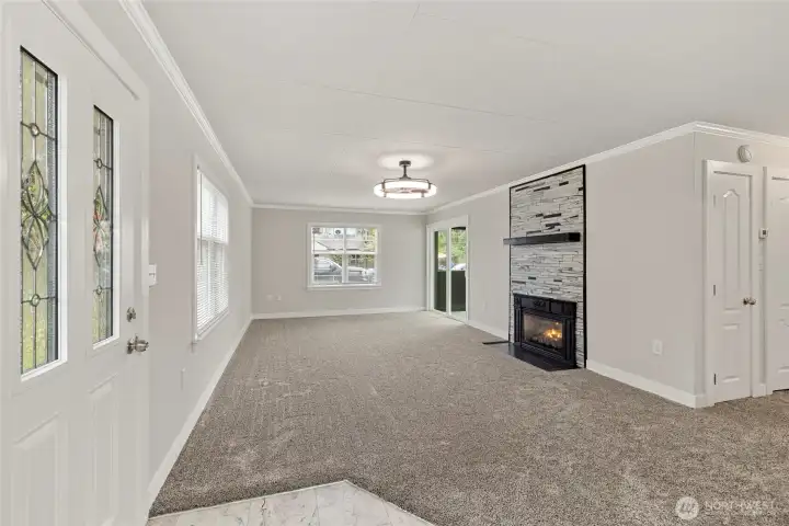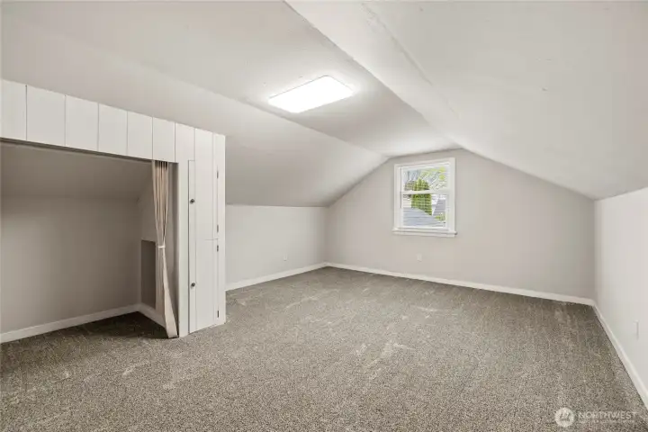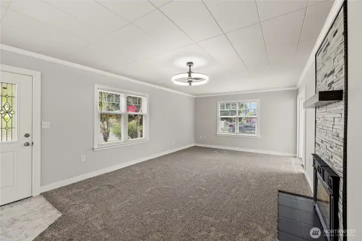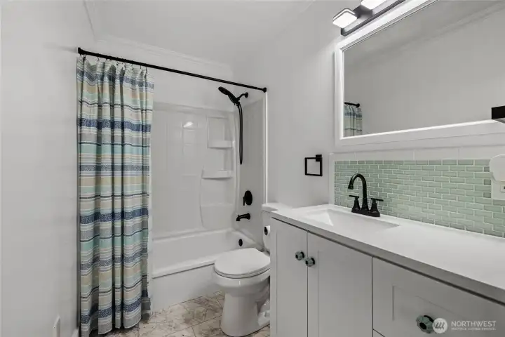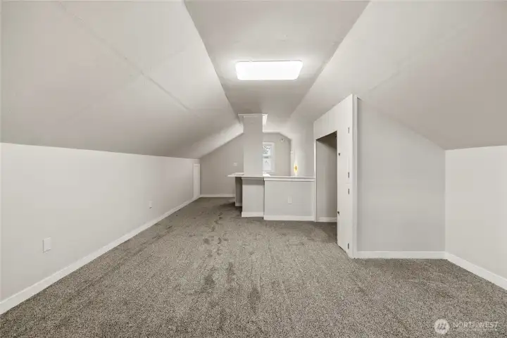 Welcome home! Completely updated, all new, roof, interior & exterior paint, carpet, vinyl, lighting, bathroom and kitchen.3 Bedroom 1 full bath. Nice tile surround gas fireplace in living room for those cozy nights. Living room is open to kitchen with a nice eat in bar area. 2 bedrooms and 1 bath on main level and large loft area upstairs makes for a large bedroom/office area. Large 1 car garage/ shop. Partially fenced, landscaped yard with patio and fruit trees. Great location, and within walking distance to shopping, restaurants and schools.