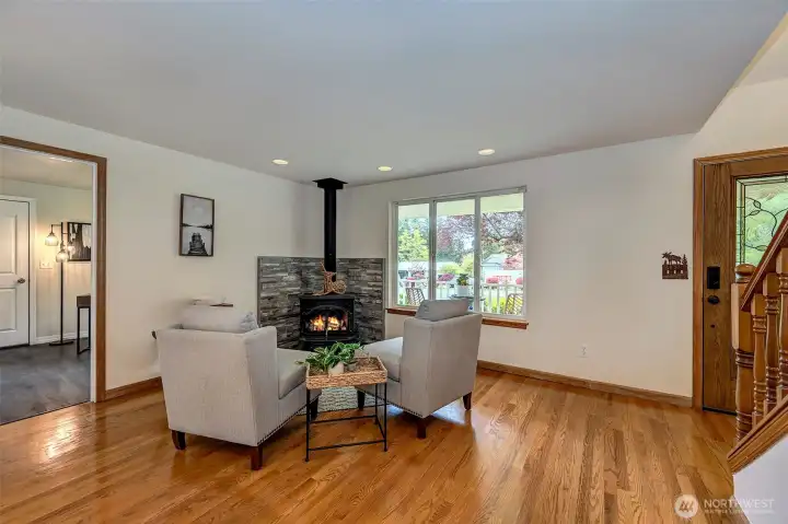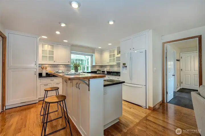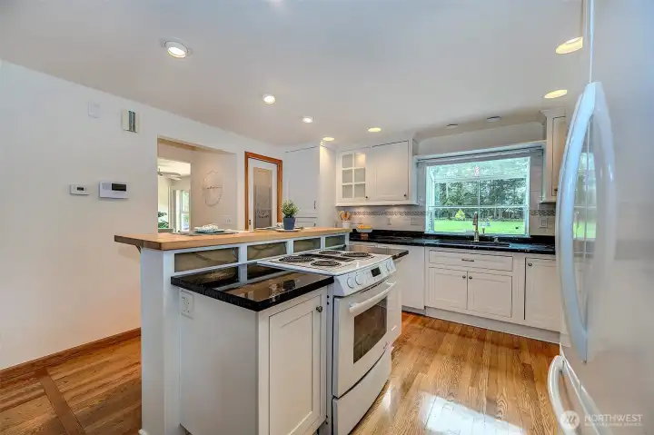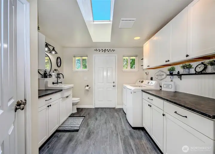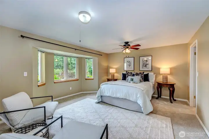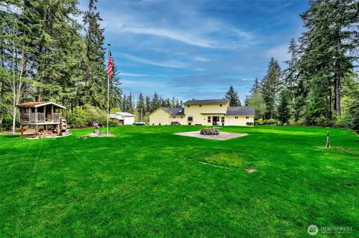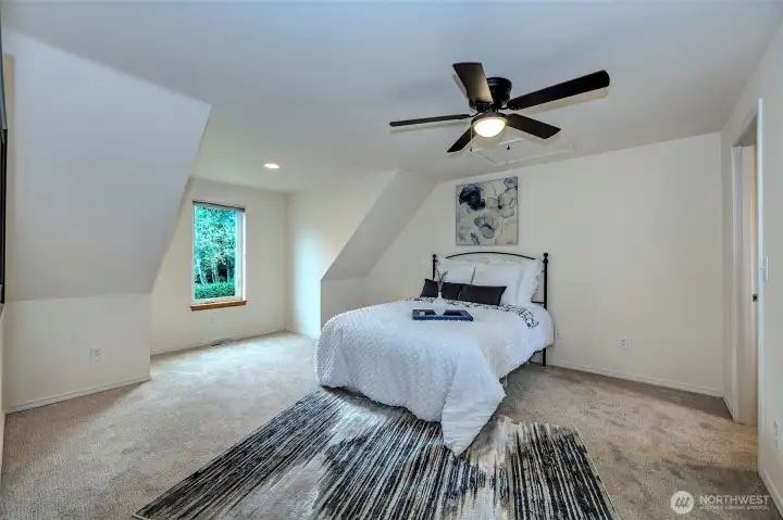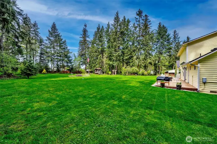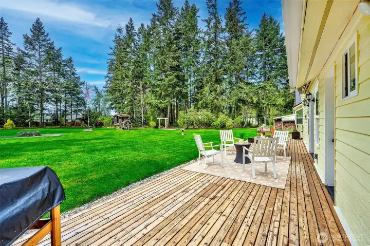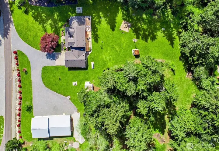 Experience the beauty & privacy of this exceptional Camano Island property on the highly desired north end of the island. Nestled on 2.5 park-like acres, this meticulously maintained 3-bed, 2.5-bath, 2,071 sq ft home offers thoughtfully designed living spaces & an attached oversized 2-car garage. Main level features a spacious primary suite with ensuite bath & walk-in closet, along with a gorgeous kitchen with custom cabinets & an adjoining dining area. You’ll also find a dedicated office, an oversized laundry room with half bath, and an inviting living room with warm wood floors. French doors open to a large deck with an automatic retractable awning—perfect for those sunny days. Upstairs are two bedrooms, both with walk-in closets, connected by an adjoining full bath. Outside, enjoy a private retreat with scenic walking trails, a built-in fire pit, & a charming working water wheel. Bonus features include a massive 4-bay shop & separate workshop with ADU/MIL (mother-in-law) potential, ideal for hobbies or storage, plus a fully automatic Cummins generator. Minutes to beach access, golf, coffee shops, Cama Beach State Park & Camano Island State Park, everyday conveniences, & no ferry. Just over an hour to Seattle & Bellevue.