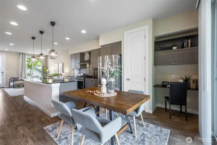So much to love about this home. Set in a quiet planned community with sidewalks, well-kept parks, and a true sense of pride of ownership, this townhome offers an excellent layout and ease of living throughout. The open kitchen anchors the main level with quartz counters, gas cooking, pantry storage, and a large welcoming island with seating. The living room with fireplace, office nook, and dining area flow seamlessly to a covered west-facing deck. Upstairs are 2BD/1.75BA, including a spacious primary suite with ample closets and an ensuite bath with a double vanity, quartz & tile finishes. The lower-level functions as its own private suite with a third bedroom and bath, ideal for guests or private home office. Outside, enjoy an easy-care patio and garden, fully fenced for furry friends. New carpet throughout, off-street parking, and dues that cover exterior maintenance and neighborhood upkeep. Close to parks, libraries, and shopping, and just a 10-minute walk to White Center favorites like Beer Star, Carniceria El Paisano’s beloved tamales, great pho and plenty of taco trucks. Just 3 miles to Lincoln Park and Puget Sound, 7 miles to downtown Seattle, and 8 miles to Sea-Tac. Easy living, great commuting, and excellent value!