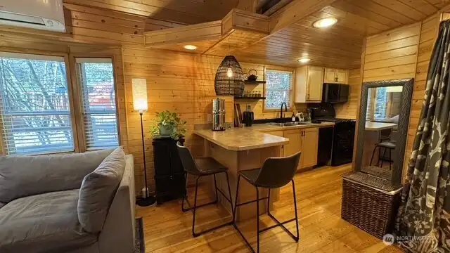 Discover the perfect cabin at Lost lake resort. 18 Oak backs up to the forest for added privacy and features/ two porches great for relaxing under a covered porch, this is ideal for barbecues and entertaining. The cabin, offers all new appliances. Dishwasher, refrigerator, and stove in the kitchen, wood interior and open kitchen, a full bathroom, abundant, natural light, new washer dryer, propane, cooking stove, mini split heat, and air conditioning a bonus loft with that holds an additional queen bed or office space. Outside is a large shed with shelving for storage. This property includes an in ground 120 gallon propane tank enjoy the top-tier COA amenities they include indoor outdoor pools sauna hot tub workout facility Pickleball playgrounds mini golf and hiking trail trails. The clubhouse host, private, and community events with stunning views of the lake.