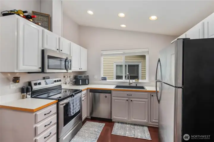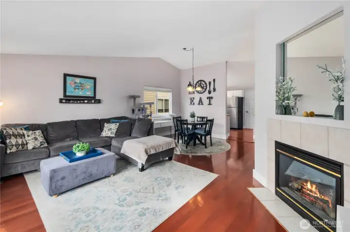 Welcome to this beautifully updated home in the desirable gated community of Country Place. Thoughtfully refreshed, this light-filled residence offers the perfect blend of comfort, style, and convenience. The open living space features soaring vaulted ceilings and a cozy gas fireplace, creating an inviting atmosphere for everyday living and entertaining. The kitchen flows into the dining and living areas, while the spacious primary suite offers a private retreat complete with ensuite bath and walk-in closet. Enjoy year-round comfort with central A/C and step outside to your private patio—ideal for morning coffee or evening unwinding. This well-maintained HOA & community offers resort-style amenities including pools, rec/game room, athletic court, and RV parking, all just minutes from Lakewood Towne Center, Tacoma Mall, and everything you need. Move-in ready and updated—this is effortless living at its best.