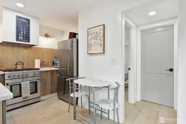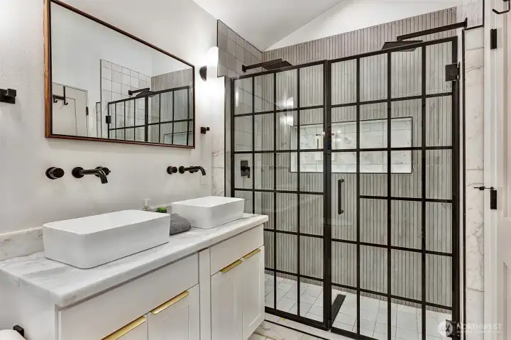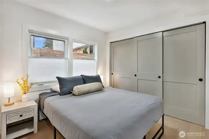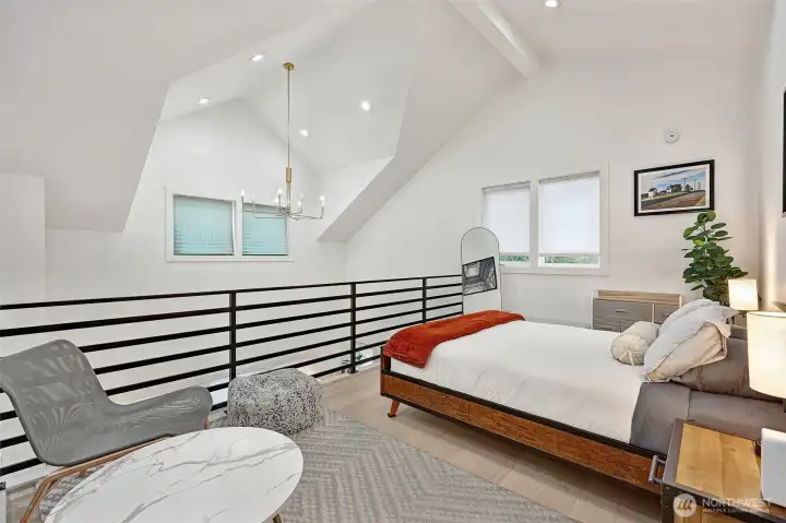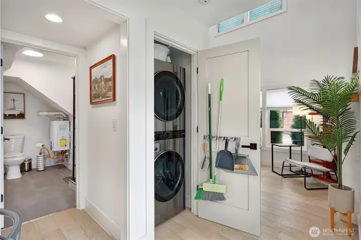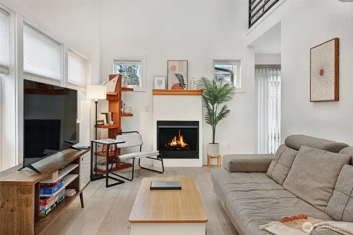 Fully furnished Short sale! Modern design meets effortless living in this striking contemporary home. Soaring ceilings and expansive windows fill the open living space with natural light, creating an airy feel that lives larger than expected. The inviting living room features wide-plank flooring and a sleek gas fireplace, flowing seamlessly into the stylish kitchen—perfect for everyday living and entertaining.The chef’s kitchen shines with quartz countertops, warm wood cabinetry, stainless steel appliances, gas range, and designer backsplash. Upstairs, the dramatic loft-style primary suite offers vaulted ceilings and a spa-inspired bath with double vessel sinks and a stunning glass-enclosed shower. An additional bedroom and full bath provide flexible space for guests or a home office. Enjoy year-round comfort with efficient mini-split heating and A/C. Outside, low-maintenance landscaping and plenty of off-street parking add convenience to this modern urban retreat. A rare opportunity to own a turnkey contemporary home that blends style, function, and smart design.
