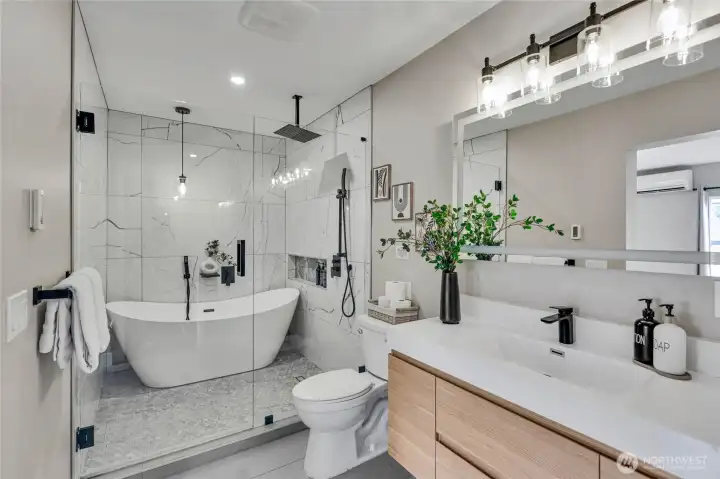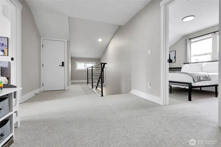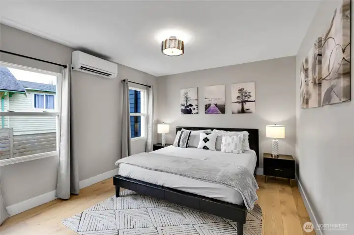 Experience the perfect blend of craftsmanship and modern comfort in this stunning, fully remodeled gem in Highland Park—a small community with three homes nestled in a friendly, quiet neighborhood. The main floor boasts an open-concept layout that seamlessly flows from the chef's kitchen to the dining and living areas. The kitchen is equipped with a high-end six-burner gas stove, stainless steel appliances, quartz countertops, and ample cabinetry. The master bedroom includes dual walk-in closets and luxury ensuite bathroom with heated tile floors. Additional second full bathroom is conveniently located off the stairs, as well as dedicated laundry room. Upstairs, you'll find two spacious bedrooms, an open loft, and two large walk-in storage areas. The lower level adds flexibility with additional living space, featuring a kitchen, full bathroom with heated tile floors, washer/dryer, and separate entry—ideal for guests, multi-generational living, or rental opportunities. The exterior features an oversized level corner lot, surrounded by tall hedges, a covered patio with solar lighting, RV parking, dedicated alley parking, and ample street parking. With extensive renovations already completed, including engineered hardwood flooring throughout the main floor and mini-split heating and cooling systems, this move-in-ready home delivers the perfect balance of style, functionality, and flexibility.