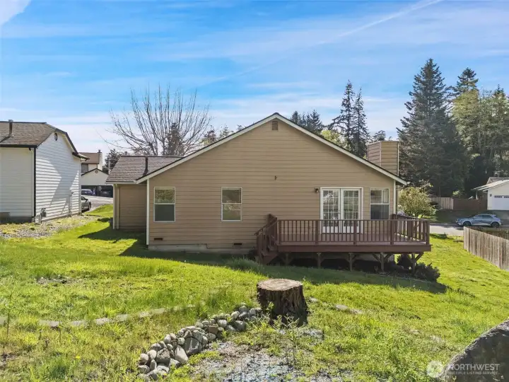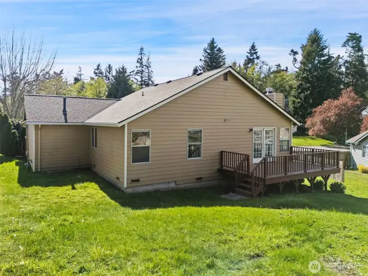 Located less than five miles from downtown Oak Harbor, this inviting home offers the perfect blend of convenience and Pacific Northwest charm—an ideal opportunity for buyers searching homes for sale with space, light, and livability. Set on roughly a quarter acre, the property provides room to grow while remaining close to shopping, dining, multiple golf courses, county parks, and the Pacific Northwest Naval Air Museum. Easy access to Hwy 20 makes commuting to Seattle or exploring the Olympic Peninsula effortless.Inside, vaulted ceilings and abundant windows create a bright, airy atmosphere throughout the main living spaces. French doors open to a large wooden deck, extending the home’s living area outdoors and offering the perfect backdrop for entertaining or quiet evenings. The backyard is a true blank slate—ready for gardens, play space, or a custom outdoor retreat. With the island’s beaches and trails just minutes away, this property delivers the best of Oak Harbor living on manageable acreage with endless potential.