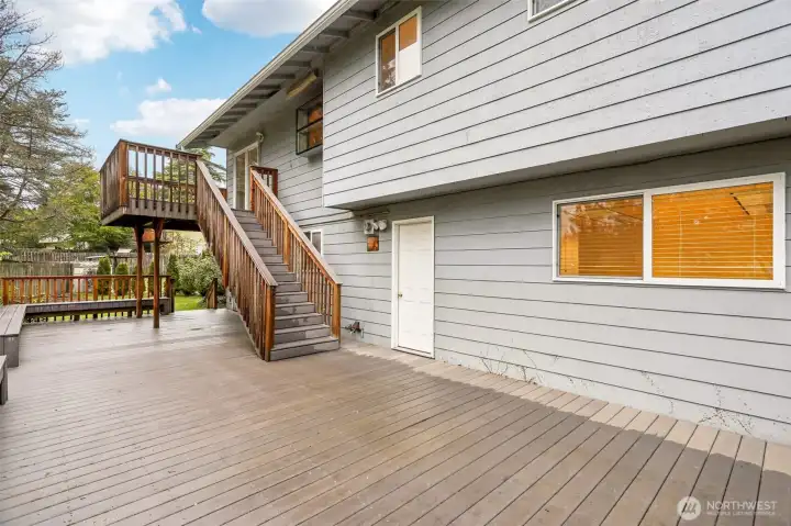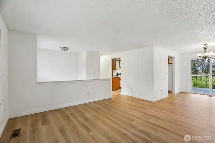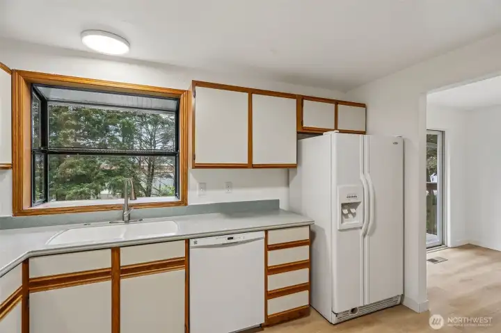 Dining room with back deck accessible via slider. Deck and yard are west facing and great sun