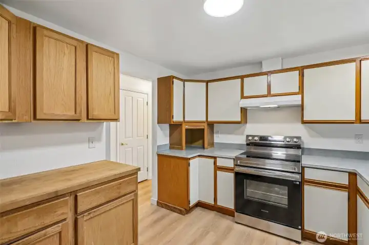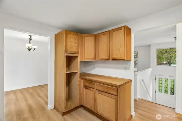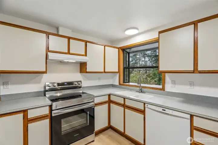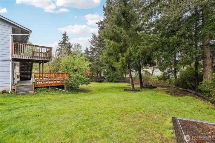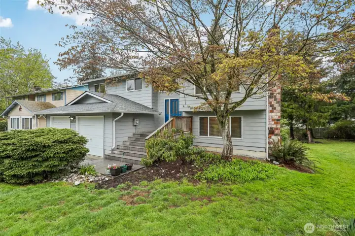 Move-in ready 4 bedroom, 1 3/4 bath with 2,000 square feet of living space and large two car garage. Situated on a private cul-de-sac in one of Mountlake Terrace's best pocket neighborhoods; curbs, sidewalks, and walkable to shopping and one block from the 111 and 112 bus. Kitchen and bathrooms are in good shape plus new flooring throughout including stairwell treads and risers. Main level includes primary bedroom with 3/4 bath, large living room, dining room and bedrooms 2 and 3. The lower level has a 4th bedroom, utilty room with backyard access, large daylight walk-out family room and and unfinished room plumbed for a 3rd bath. The huge 12,600 square foot lot has terrific privacy and many established plantings. The 2 car garage is big with built-in work bench and extensive storage. There are 2 fireplaces, wood burning on main level and a gas insert downstairs great room and wood in the upstairs living room. Recently poured concrete driveway and new sidewalk! 1.7 miles to MLT light station and freeway access.