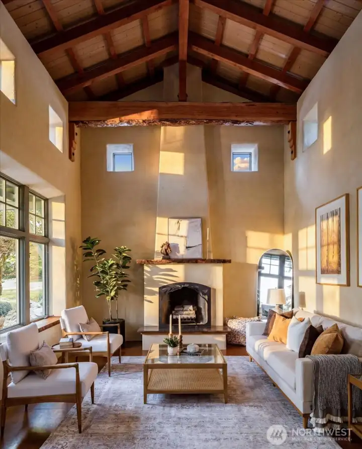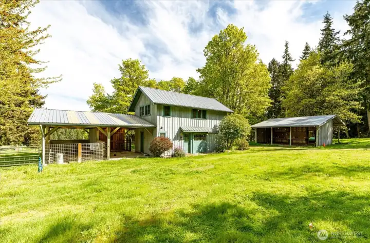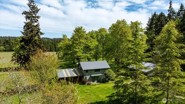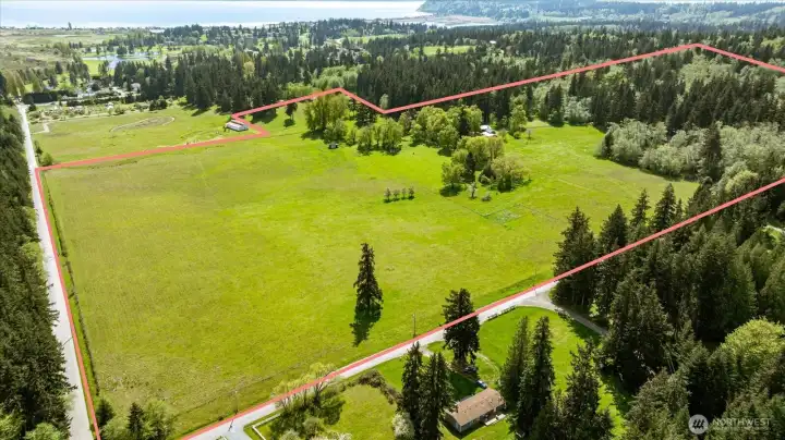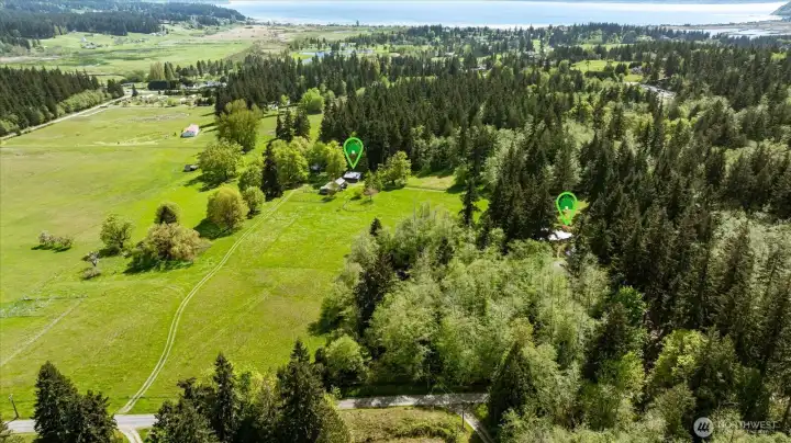 Extremely rare opportunity to own a 66+/-acre farm spanning two parcels in the heart of Bayview. This custom-designed Ross Chapin home showcases SIP block construction, Venetian plaster walls, radiant in-floor heat, and stained concrete floors. The expansive primary suite is a true retreat, featuring a sun room and private patio, while custom barn wood doors and built-in cabinetry lend warmth and character throughout. The cathedral main room is anchored by rough-cut beams, creating an inviting gathering space. Outside, an oversized two-stall garage, fully fenced yard, and dog run provide everyday ease. Equestrian and hobby farm amenities abound: a guest house barn with walk-in stalls, equipment shed, corral, chicken coop, mature orchard, and 40+ acres of lush pasture. Take in sweeping territorial views stretching across the pasture to Useless Bay and Mt. Rainier, and unwind beside your very own private pond. A true private sanctuary blending refined craftsmanship, thoughtful design, and rare acreage in one of Whidbey Island's most coveted locations. Properties of this caliber and scale rarely come to market — an exceptional legacy offering for the discerning buyer.