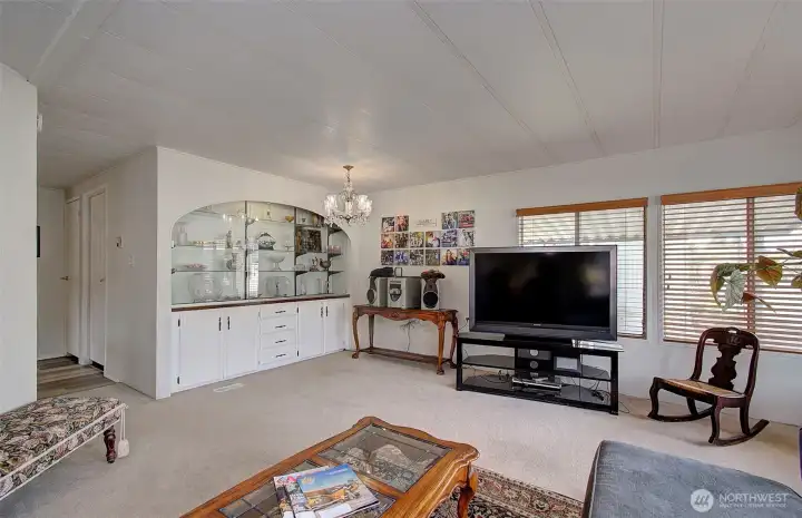 Welcome to easy, comfortable living in Kelso’s desirable 55+ Brook Hollow RV Park! This well-designed 3-bedroom, 2-bath, 1,433 sq. ft. double-wide manufactured home offers both space and charm. Enjoy a bright front living room filled with natural light from expansive windows, plus a cozy family room with a sliding door that opens to a covered deck—perfect for relaxing or entertaining year-round. The kitchen is thoughtfully equipped with bar seating, a pantry, built-in oven, cooktop, and microwave, making meal prep a breeze. A standout feature is the beautiful built-in, lighted curio/china hutch, ideal for showcasing your favorite pieces. The primary suite provides comfort and convenience with dual closets and a private bath featuring a step-in shower, while two additional bedrooms offer flexibility for guests or hobbies. A utility room just off the kitchen adds valuable extra storage and direct access to the carport. Sellers recently added a large storage shed and new appliances. This home combines function and style in a welcoming community setting. Sale is subject to park approval of the buyer.