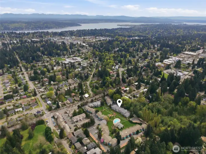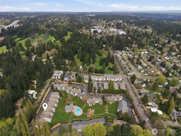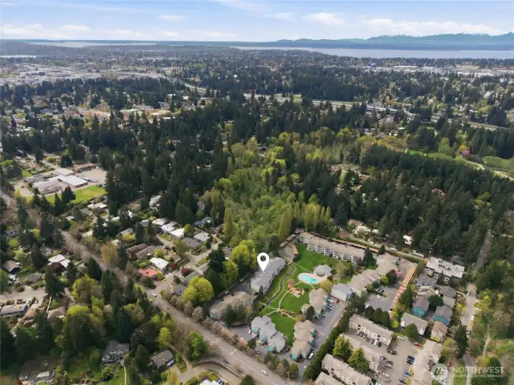 Welcome to this beautifully updated residence in the Bridgehaven community, offering a rare combination of space, comfort, and convenience. This mid level unit features ground level entry with no stairs, providing easy access. Inside, the home opens to an expansive living space rarely found in today’s market, creating flexibility for both relaxing and entertaining. The renovated kitchen features modern appliances and clean finishes, while updated bathrooms bring a cohesive feel throughout. Newer windows and a recently replaced water heater add comfort and long term value. Generously sized bedrooms with oversized closets offer exceptional storage, while an in unit washer and dryer enhances everyday functionality. A wet bar adds an ideal touch for hosting. Step out to your private balcony and enjoy the peaceful, park like setting surrounded by mature landscaping. Additional highlights include two covered parking spaces, a valuable and hard to find feature. Residents enjoy amenities including a pool, hot tub, sauna, and clubhouse, all within a well established community. Ideally located near Jackson Park Golf Course, with easy access to I 5, transit along 15th Ave NE, and the Northgate light rail for connectivity to downtown, UW, and beyond. A rare opportunity to own a spacious, updated condo in one of North Seattle’s most convenient locations.