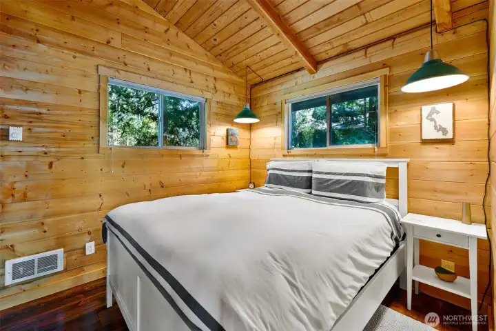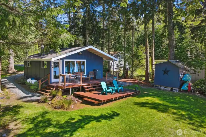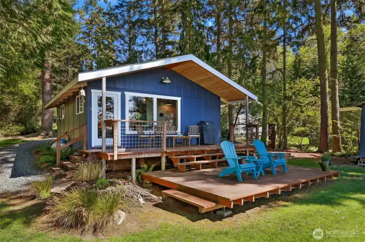 Rare opportunity to own 190 feet of gorgeous high bank waterfront property in the sought after Saratoga Beach neighborhood. This sale includes 3 lots separated into 2 parcels, totaling over 42,000 square feet of view property (shy one acre). Enjoy sweeping western views over Holmes Harbor toward the Olympic Mountains, taking in visiting whales, soaring eagles and inspiring sunsets. Parcel 1, with two lots, boasts a beautifully updated view cabin with gleaming hardwood floors, white-washed wood walls and retro appliances. Additional upgrades include remodeled bathroom, new windows, exterior doors, dishwasher, hot water heater and propane fireplace. Large, covered porch and deck extend living areas outside. Cabin is truly turn-key and is being sold fully furnished and two-bedroom septic system makes it possible to dream about developing property further. Parcel 2, with adjoining third lot can be enjoyed as is, combined with parcel one or sold off. Community amenities include gated private beach, boat launch, and scenic cabana with plenty of parking. Centrally located just minutes from Langley’s seaside village and Freeland’s conveniences — this special property offers many possibilities — and is ready for you to enjoy this summer and plan your dreams for the future.