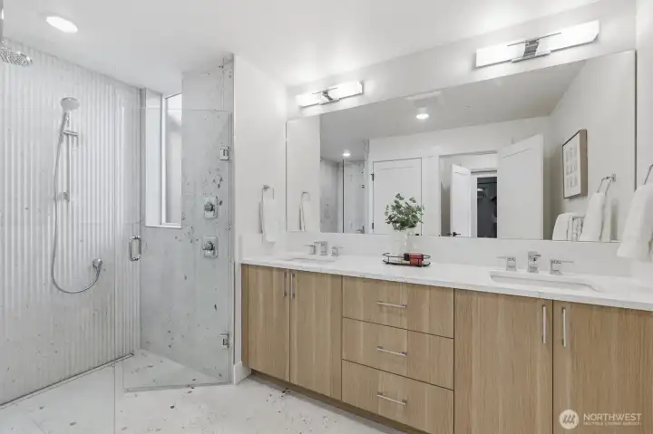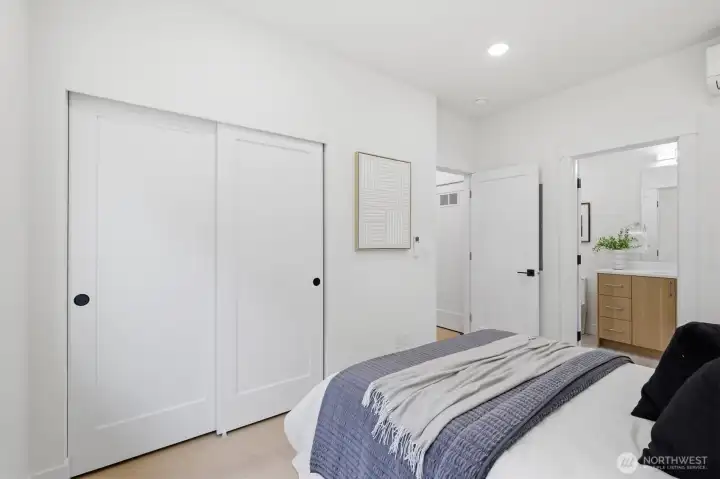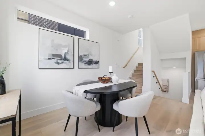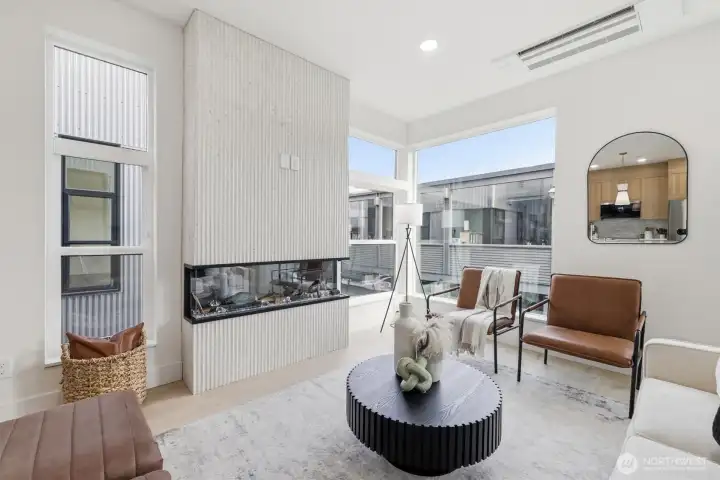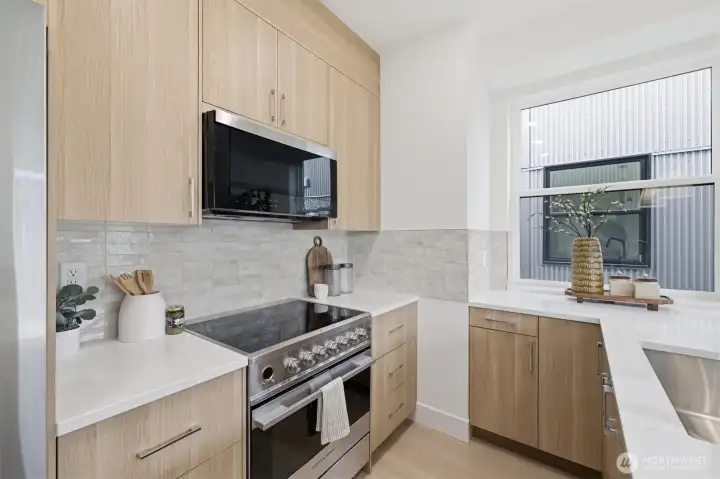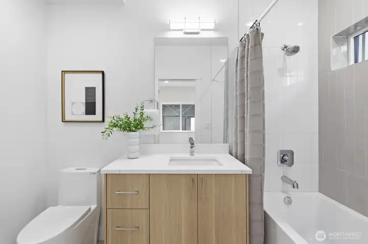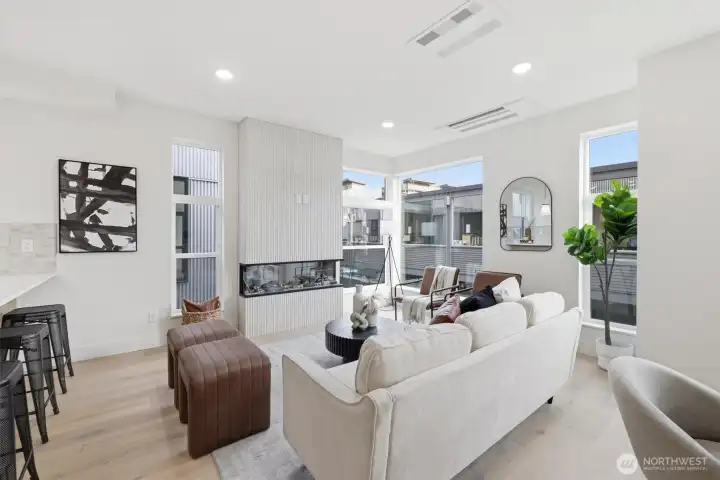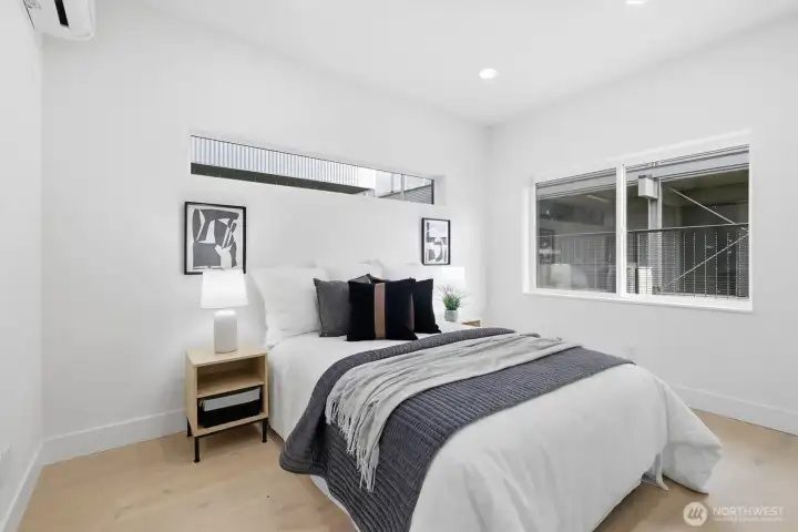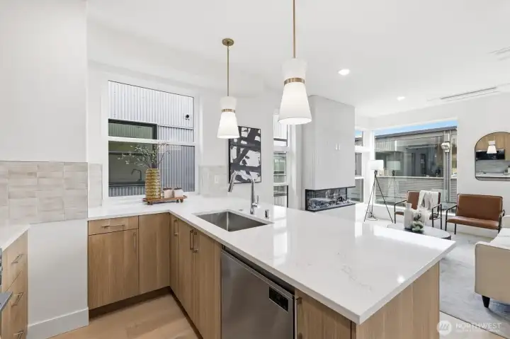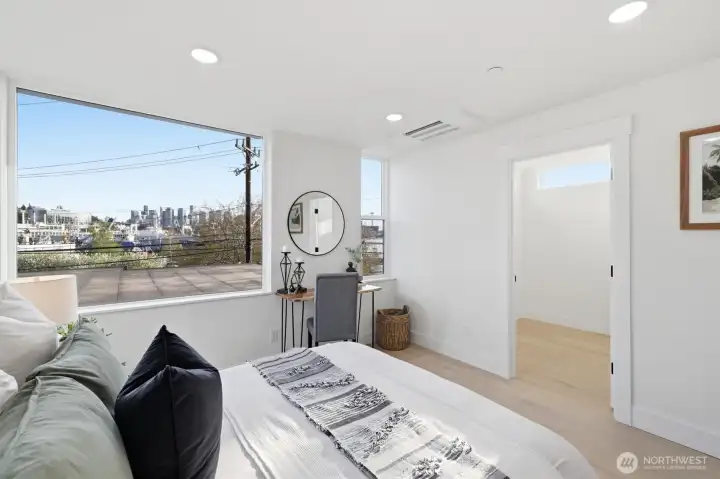 Positioned in the heart of Eastlake, this 2 bed, 2.5 bath residence at Harbor 26 offers 1,307 sqft of well-balanced living with a focus on comfort and function. The open-concept main level connects living, dining, and kitchen spaces seamlessly, finished with clean lines, modern materials, and a thoughtful, livable design. From the living room, take in drop-dead Space Needle views—a striking backdrop that elevates the everyday. Both bedrooms are generously sized, each with its own bath, while a powder room on the main level adds convenience. Above it all, a private rooftop deck extends your living space outdoors, capturing sweeping views of Lake Union and the Seattle skyline. Set within a gated community and complete with secured garage parking, this home offers a more refined, low-maintenance take on waterfront-adjacent living. Crafted by DEP Homes Eastlake, known for consistent quality and intentional design.
