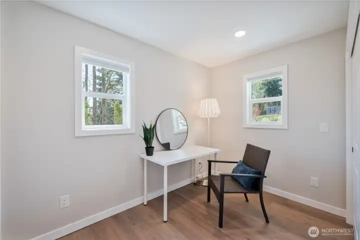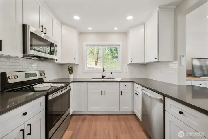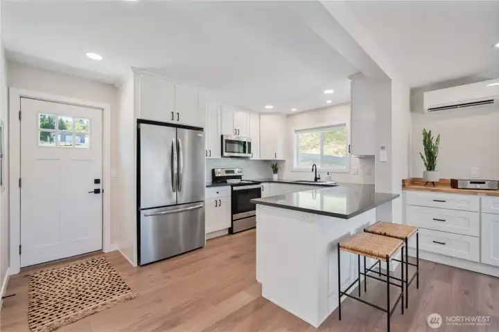 Stylish and elegant contemporary turn key home now available. This delightful two bedroom one bath home embraces easy living…. Beautiful upgrades include new kitchen featuring tile backsplash and quartz countertops. All appliances include. Gorgeous tile bathroom with built-in shelving and tile surround. The larger of the two bedrooms features a walk-in closet. Beautiful LVP flooring throughout. Keep cool in the summer and warm in the winter with ductless mini split. Outside features include patio perfect for outdoor entertaining. Brand new septic system. Oversized lot. Outdoor storage shed. Quiet private road. Make your appointment today to see this adorable home!