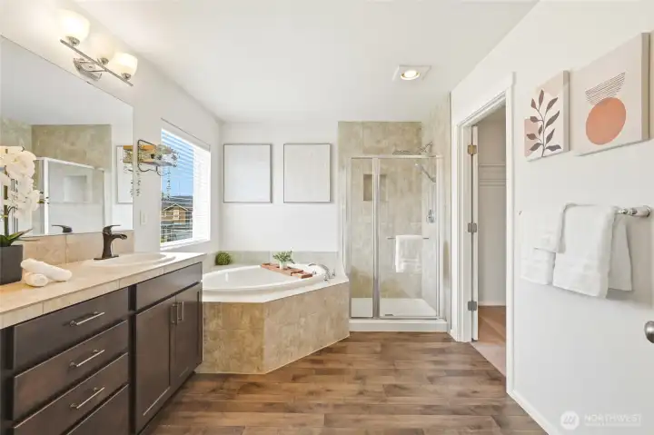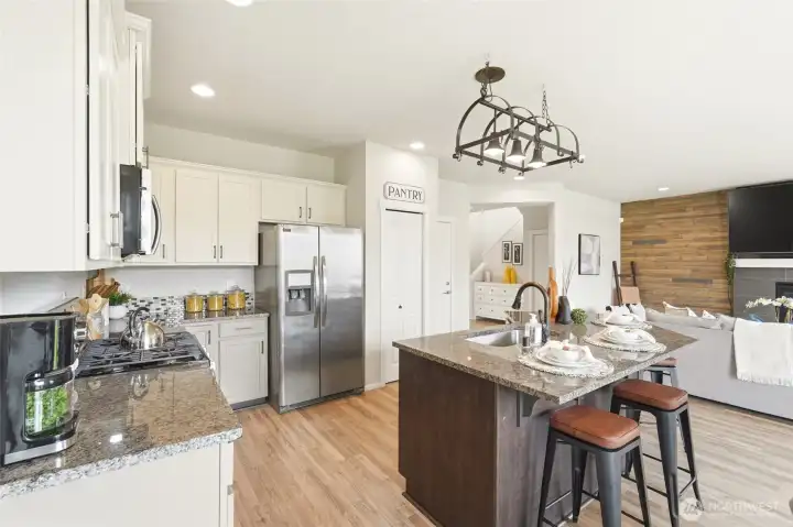 Welcome to Suncrest Farms, where comfort, convenience and style come together and meets the natural beauty of the Cascade foothills. This inviting home greets you with a bright, open layout filled with natural light. Designed with flexibility in mind, the versatile flex room would be perfect for a home office, cozy reading nook, playroom, or whatever suits your lifestyle. The conveniently located upstairs laundry room adds ease to everyday living. The heart of the home is made for gathering and entertaining, featuring a 5-burner gas range, stainless steel appliances, soft-close cabinetry, and a spacious granite island with seating. Car enthusiasts and organizers alike will appreciate the upgraded garage, complete with painted walls and ceiling, durable high-grade polyurea flooring, and a wireless exterior access pad, with room for up to three vehicles or additional storage. Energy efficiency is another bonus with solar panels already installed, helping eliminate your PUD bill. Not to mention, this home is located perfectly near schools, parks, trails, fishing, hiking and so much more. Don’t miss your chance to make this exceptional property your own!!