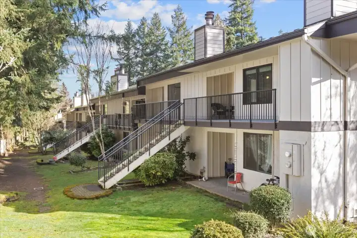 Unbeatable Kirkland convenience in this light-filled rare 3 bedroom, 2 bath condo ideally located just minutes from The Village at Totem Lake. One owner condo is well loved & maintained. New windows & blinds, updated kitchen/bath, all appliances stay. Relax in the spacious living room with a cozy fireplace or step outside to the walk-out yard and covered deck with additional storage, perfect for everyday living. Additional highlights include in-unit laundry, a dedicated parking space, an additional spot plus abundant visitor parking. Community amenities include an outdoor pool and clubhouse, along with a strong HOA and low dues that cover water, sewer, garbage, and more. No rental cap and FHA spot approval likely make this an excellent opportunity for both homeowners and investors. Prime location just one mile to The Village at Totem Lake with dining, shopping, and entertainment, plus easy access to I-405, nearby parks, Lake Washington, and major Eastside tech hubs.