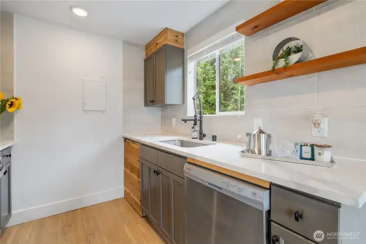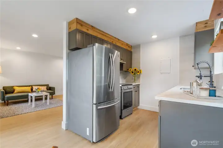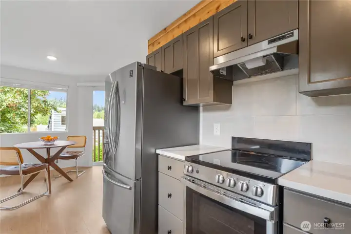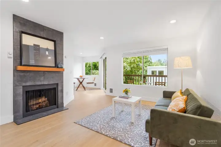 Experience the pinnacle of West Bellevue living. Perfectly positioned just minutes from Meydenbauer Bay Park, Bellevue Square, and the vibrant dining scene of Old Main Street, this impeccably updated residence offers the ultimate urban lifestyle. The interior shines with streamlined kitchen cabinetry, sleek quartz countertops, and high-end stainless steel appliances, all complemented by warm wood-finish flooring and meticulous tile work. Retreat to the sun-drenched living area featuring a cozy wood-burning fireplace, or enjoy your morning coffee on the spacious covered deck. With low HOA dues, a newer roof, no special assessments, and no rental cap, this is a rare opportunity for both homeowners and investors in Bellevue’s most sought-after zip code.