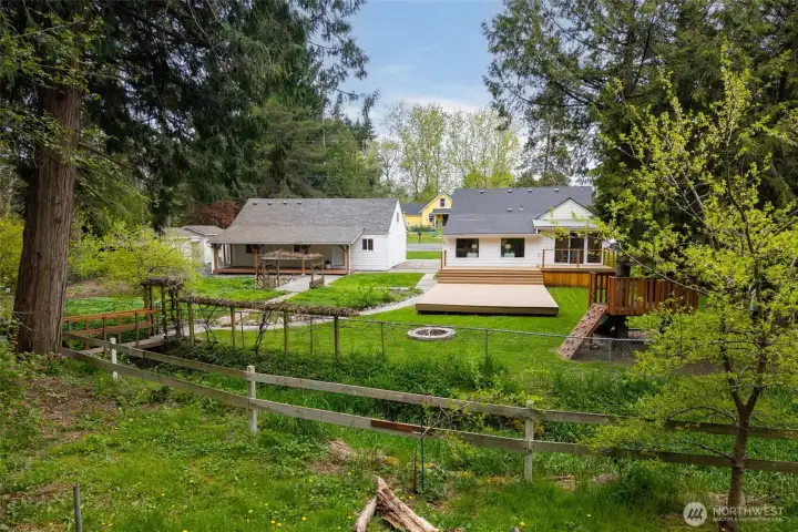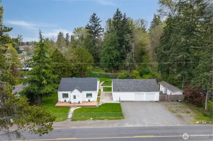 Nestled on a private corner lot just shy of an acre, this unique property offers the perfect blend of space, versatility, and future potential. Surrounded by mature trees, the home provides a peaceful, secluded setting while still offering convenient access to shopping, freeway and JBLM. Inside you will find an updated kitchen with Quartz countertops, soft-closed cabinets and stainless steel appliances, LVP flooring and natural lighting throughout. As you walk out back to your massive Trex deck, you will already envision the summer days (and nights) of entertaining, relaxing or enjoying the natural surroundings. The fully fenced area is a gardener’s dream, complete with expansive planting space and established fruit trees, creating your own backyard oasis. In addition, there is a separate 1 bedroom 1 bathroom living space with kitchenette, perfect for multi-generational living or possibly used for additional rental income. This property also presents exciting future development or subdivision potential, making it not only a wonderful place to live but a smart investment opportunity. Don’t miss your chance to call this place your own and just in time for summer!