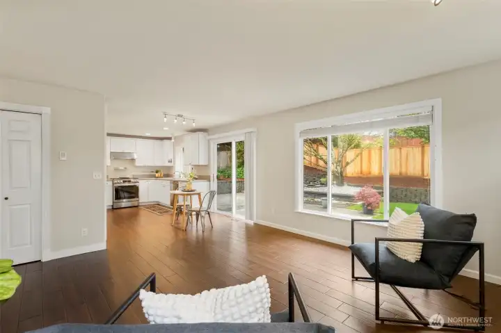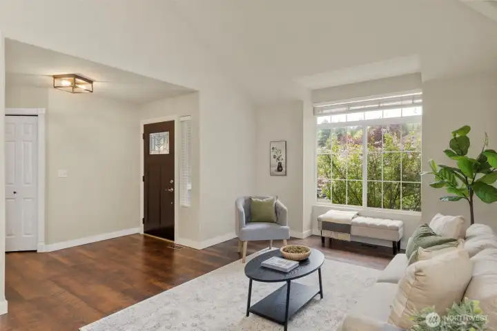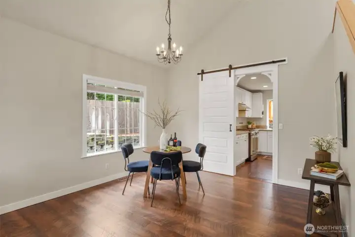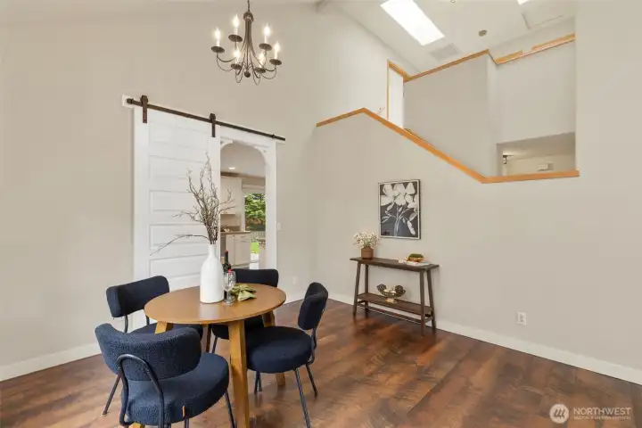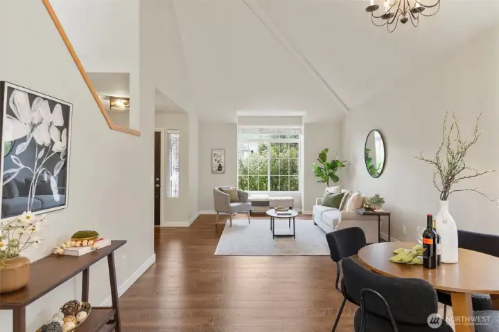 Vaulted Ceilings, dining and front living room, leading to kitchen