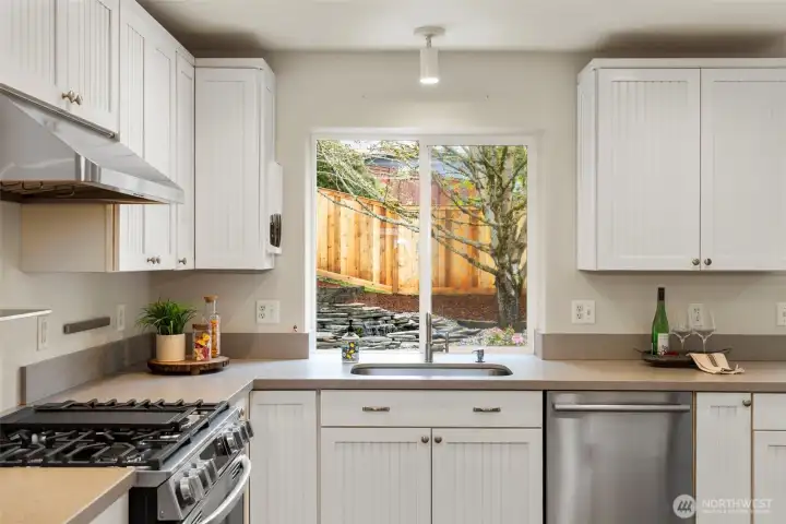 Updated Kitchen with quartz counters and stainless appliances including new dual fuel oven/range!