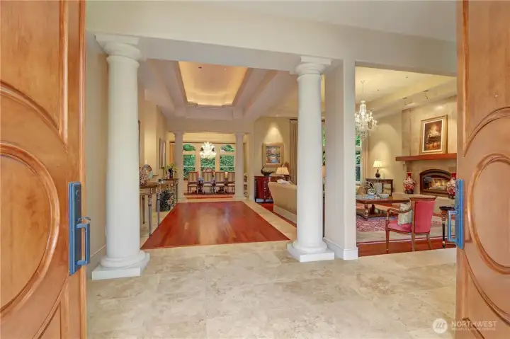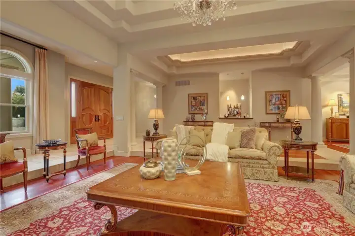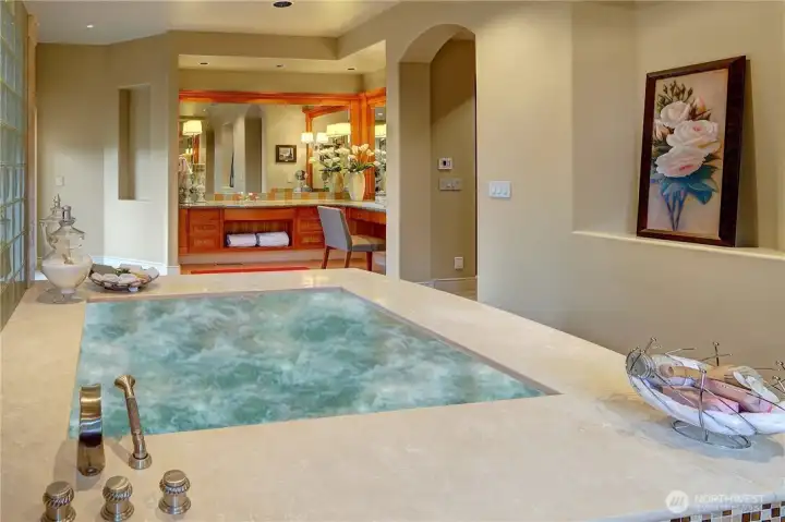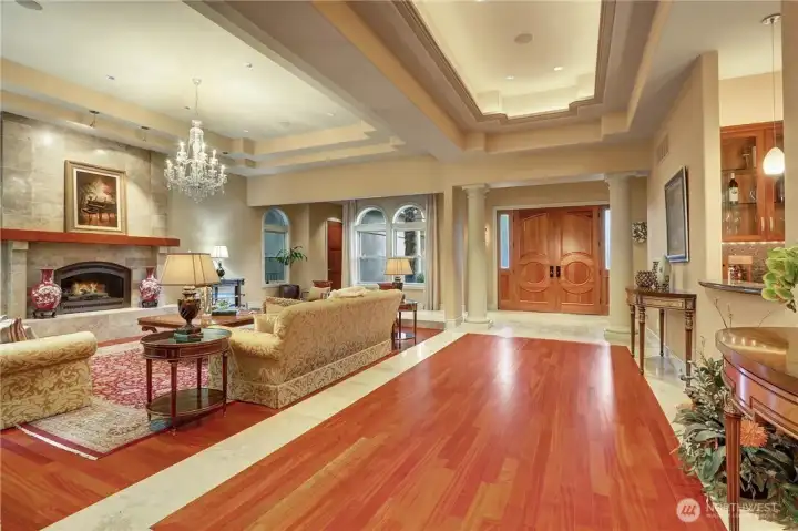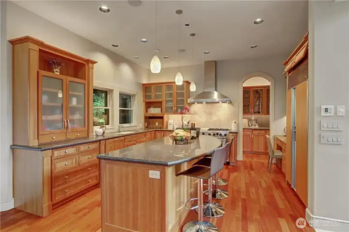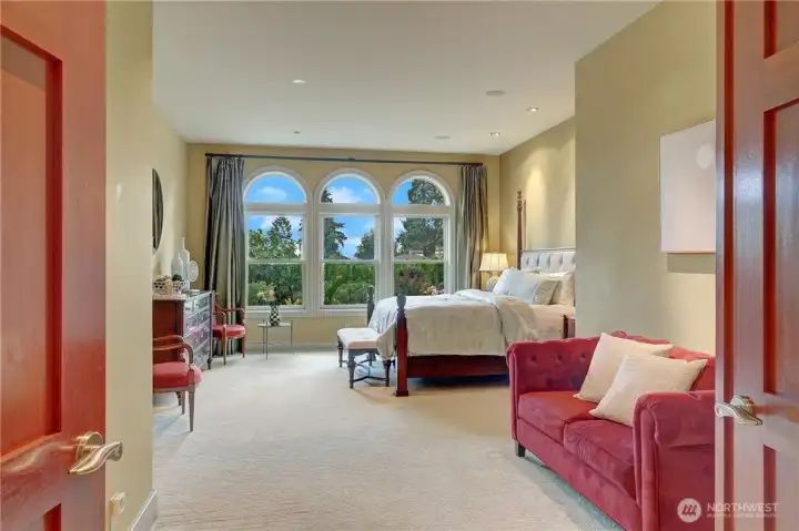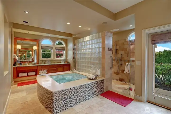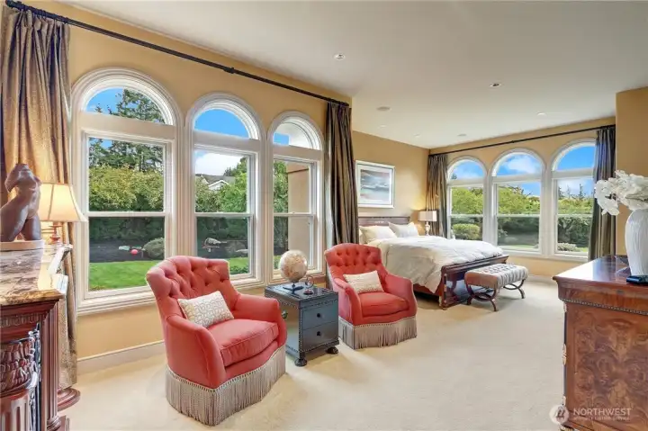 Magnificent Mediterranean estate rests at the quiet & private cul de sac, close to parks, lake & downtown Bellevue. Exquisitely built home sits in a shy of ¾ acre leveled lot/w expansive southerly yard featuring variety of fruits ripening from June to Dec. rose garden & year round flowers, play ground & lush lawn. Grand entry leads to a large living rm & formal dinning. A huge skylight hovers over an indoor garden next to the artistic wrought iron staircase. S facing family room seamlessly flows inside out. King & queen’s master STE/w walls of arch windows overlooking the garden. Executive office, theater & 2 chief’s kitchens. Designed/w good fengshui both for peaceful living & joyful entertaining. A quintessential resort like Home!
