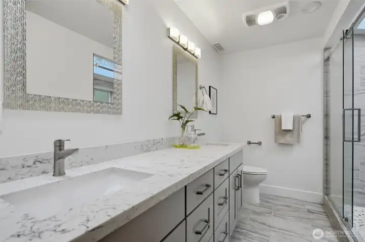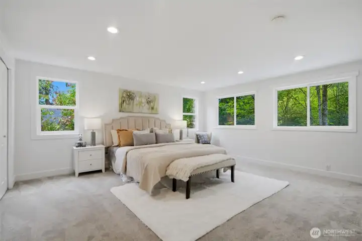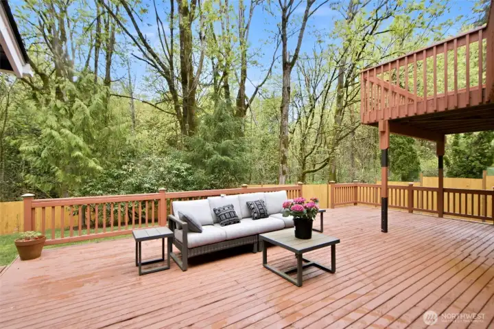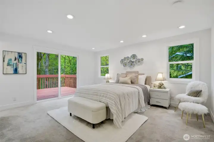 Nestled at the end of a cul-de-sac in sought-after Somerset, this spacious 2-story home offers 5 bedrooms, 3.25 baths, and 2,760 square feet on a 9,025 square foot lot. The fully fenced, level backyard backs to a greenbelt, creating a private, park-like outdoor setting. Two decks provide great space for entertaining or relaxing. The circular cul-de-sac in front offers a safe, open area for outdoor play. Recent updates include a brand new 50-year composition roof, brand new engineered hardwood flooring, new interior and exterior paint, new kitchen countertops, new gas range and range hood, new electric fireplace, and new backyard landscaping. Skylights bring in abundant natural light. Stay comfortable year-round with A/C. The layout features spacious living areas for everyday living and hosting guests. A second primary suite with its own deck adds flexibility. Located in one of Bellevue’s most desirable neighborhoods with award-winning schools including Somerset Elementary, Tyee Middle, and Newport High School. Easy access to I-90 and I-405, close to major employers such as Microsoft, Amazon, and Meta, and minutes to Downtown Bellevue, Factoria Mall, T&T Supermarket, restaurants, parks, trails, and more.