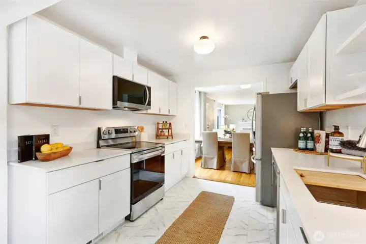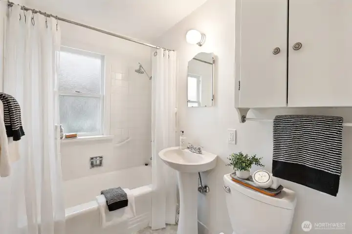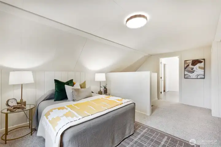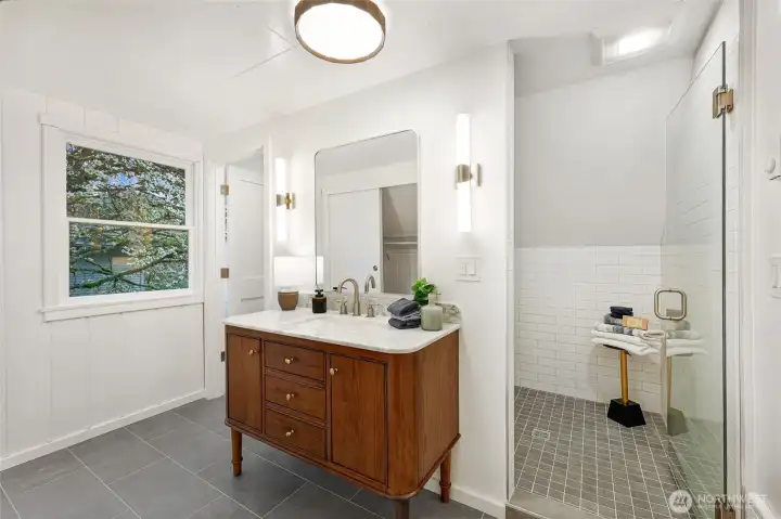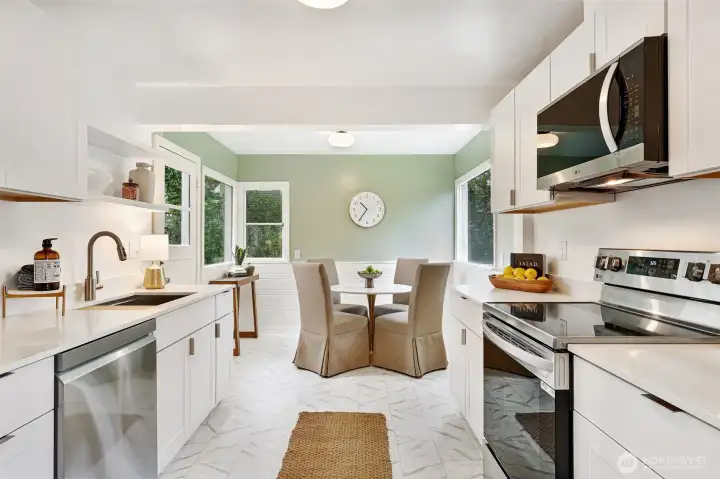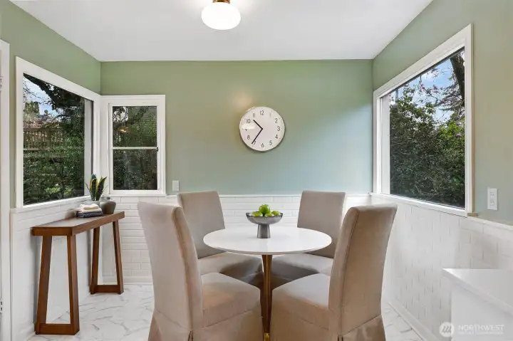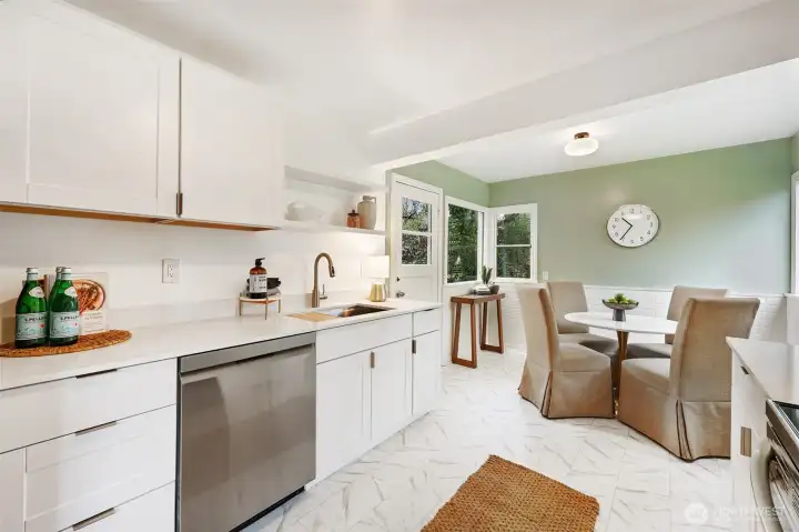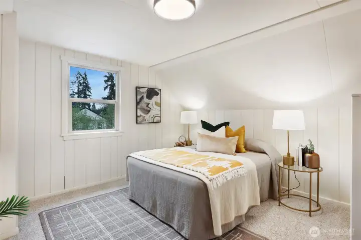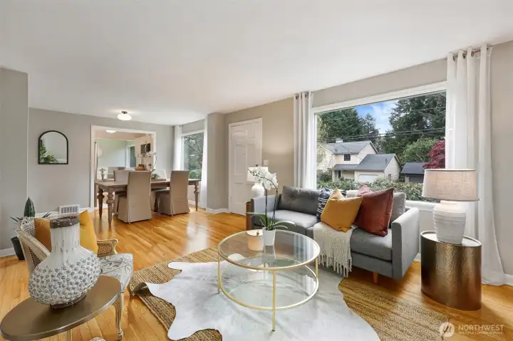 Updated copy per seller requests: Thoughtfully maintained Bryant home situated on a corner lot with elegant, mature landscaping. A gracious living room bathed in natural light and featuring a fireplace and hardwoods welcomes you at the front door. Chefs will love the newly updated kitchen with all new appliances and cabinets. Entertainers will enjoy the dining room adjoining the kitchen and living room, as well as the two outdoor decks for year-round pleasure. The first, accessible right off the kitchen's breakfast nook, offers ample shade for outdoor relaxation. The second is a south-facing rooftop deck off the living room, ideal for enjoying sunny PNW days. Two bedrooms and a full bath are on the main level. Upstairs features a newly updated primary bedroom with an ensuite bath. Lower level flex room, laundry area, non-conforming fourth bedroom, storage space, and a large attached garage. New heat pump HVAC system with central heat and AC. Ideally located on a quiet residential street near popular amenities, including University Village, PCC, Bryant Playground Park, and more. Welcome home!