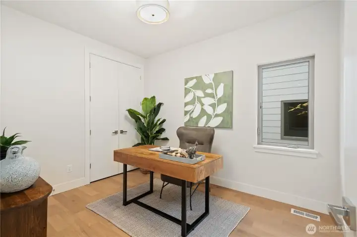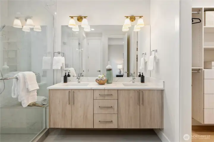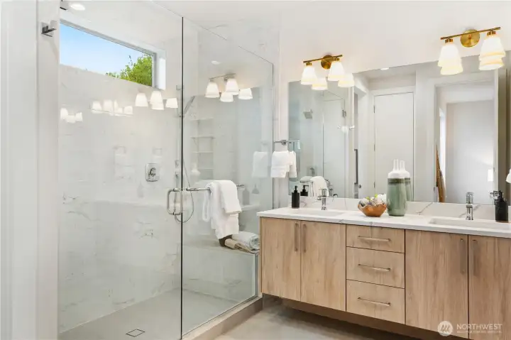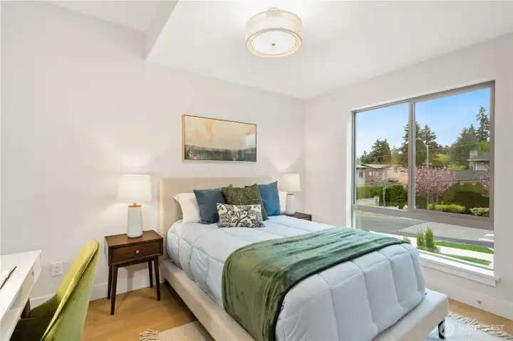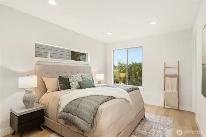 Merit Homes presents Wilder Lot 2! The 4-home community in desirable rose hill offers this thoughtfully designed two-story floorplan offering a reduced footprint without sacrificing luxury or livability. This home features 3 bedrooms, 2.5 bathrooms, a bright, open layout, and an attached EV-ready garage. Step inside to a light-filled open-concept main level ideal for both everyday living and entertaining. The gourmet kitchen showcases a quartz slab island with bar seating, custom soft-close cabinetry, dual-zone wine chiller, and a premium appliance package highlighted by an induction range. The great room is warm and inviting with a sleek contemporary linear electric fireplace and seamless access to the outdoor patio. A stylish powder bath completes the main floor, perfect for guests. Upstairs, the primary suite is a true retreat, filled with natural light and featuring a spa-inspired walk-in shower with bench seating and dual shower heads, plus a walk-in closet with custom shelving. Two additional bedrooms provide ample space, complemented by a full secondary bathroom and a well-appointed laundry room with quartz countertops and upper and lower cabinetry. Ideally located for effortless commuting with quick access to major employers including Microsoft, Meta/Facebook, Amazon, and EvergreenHealth. Enjoy close proximity to Kirkland Costco, The Village at Totem Lake, parks, walking trails, and top-rated schools.